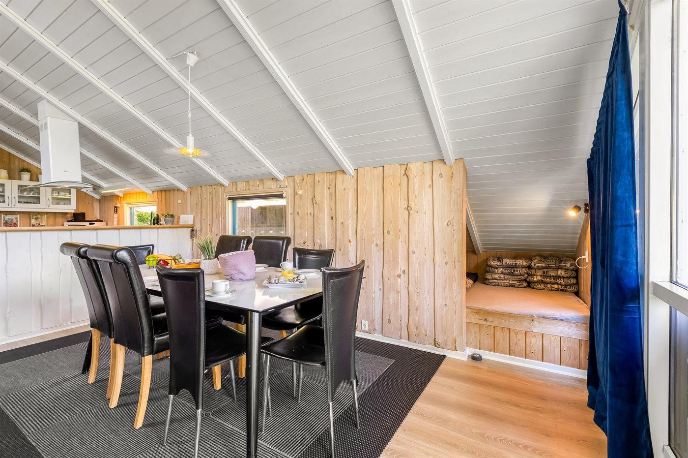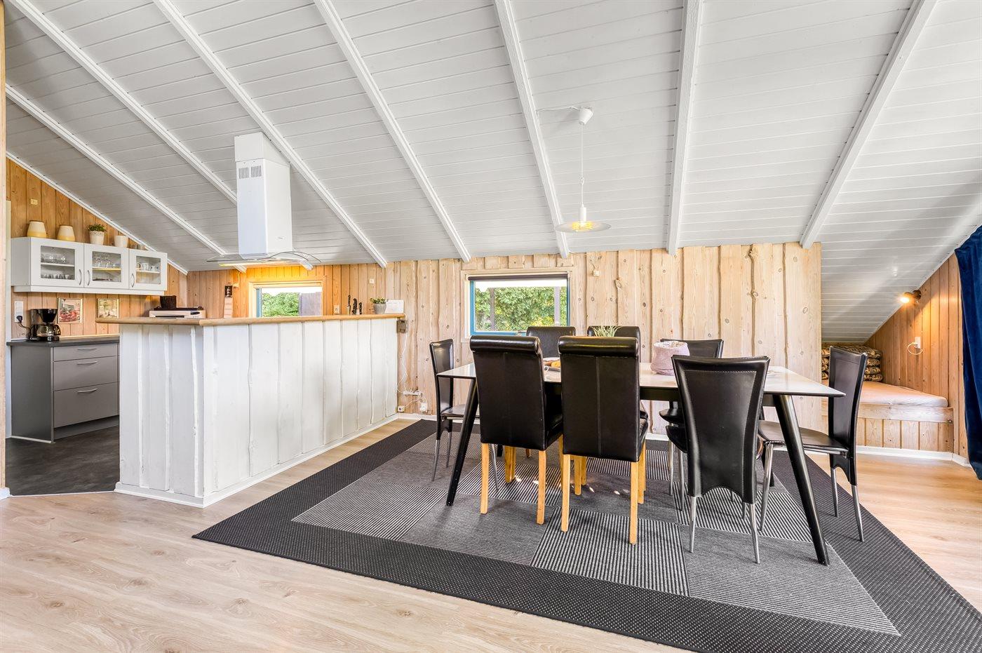 Sommerhuset egner sig til 8 personer samt 1 barn op til 3 år. 2 af sovepladserne er kun egnet til større børn (4-11 år). Ferieboligen er på 98 m² og er bygget i 1994. Det er tilladt at medbringe 1 husdyr. Ferieboligen er udstyret med energibesparende luft til luft varmepumpe. Ferieboligen har vaskemaskine. Frysekapacitet på 40 liter. Der er desuden brændeovn. Til de små er der 1 stk. barnestol.