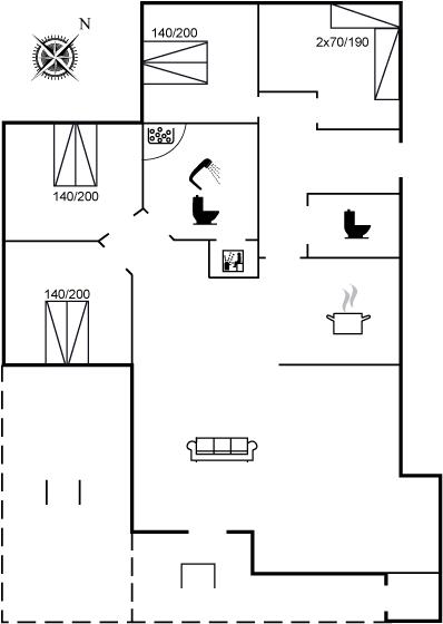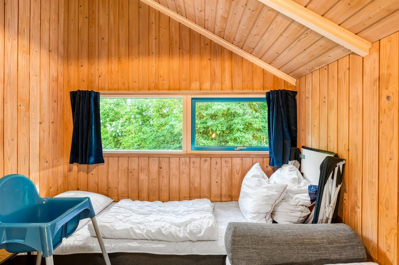 Der er i alt 4 soveværelser. Sovepladserne fordeler sig på: 6 sovepladser i dobbeltsenge. 2 sovepladser i enkeltsenge. Derudover er der 1 stk. barneseng.