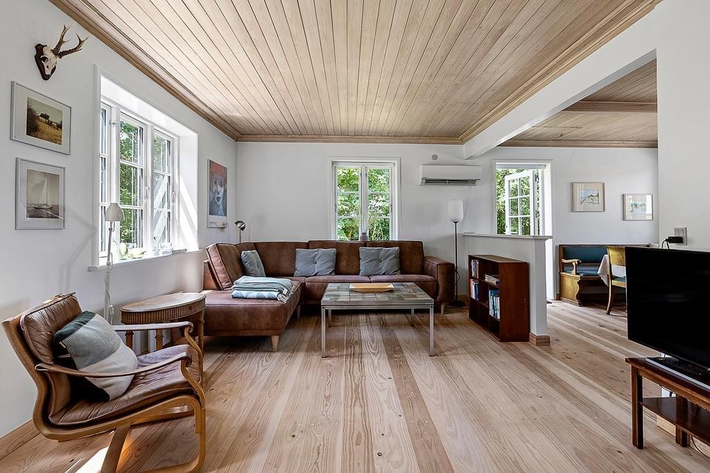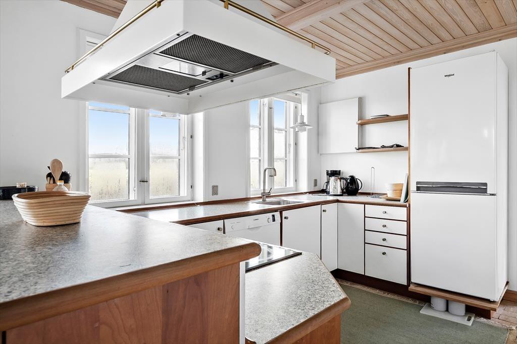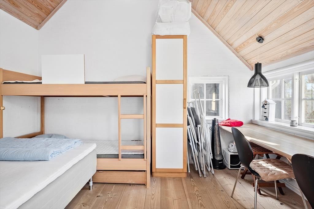 Huset indeholder et godt køkken med spiseplads, udgang til haven samt i åben forbindelse med stuen med energibesparende varmepumpe og brændeovn. Derudover er der et badeværelse med vaskemaskine og gulvvarme samt i alt 2 soveværelser: Et værelse med dobbeltseng samt et værelse med både dobbeltseng og køjeseng.