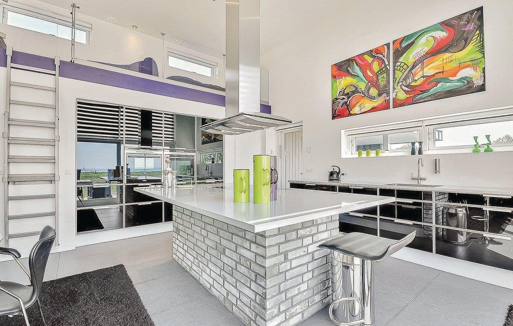 Allerede når I ankommer til huset, mærker I, at I er kommet til noget særligt. Her er der kræset for detaljerne og beliggenheden er hel unik med fuld panorama over havet. Huset er opført i moderne stil og design, som simpelthen skal opleves. Boligen indeholder bl.a. en stor, hyggelig opholdsstue i åben forbindelse til køkkenet, hvor pejsen giver den rette stemning. Soveværelserne har elevationssenge og fra master bedroom er der adgang til eget badeværelse. Hertil kommer et stort badeværelse med spa og sauna. På den store grund kan I kan boltre jer, og når I kommer fra en dukkert i havet, kan I skylle jer under den udendørs bruser. Der er en stor delvis overdækket terrasse, hvor I både kan nyde solen og skyggen samt hygge jer omkring grillen.