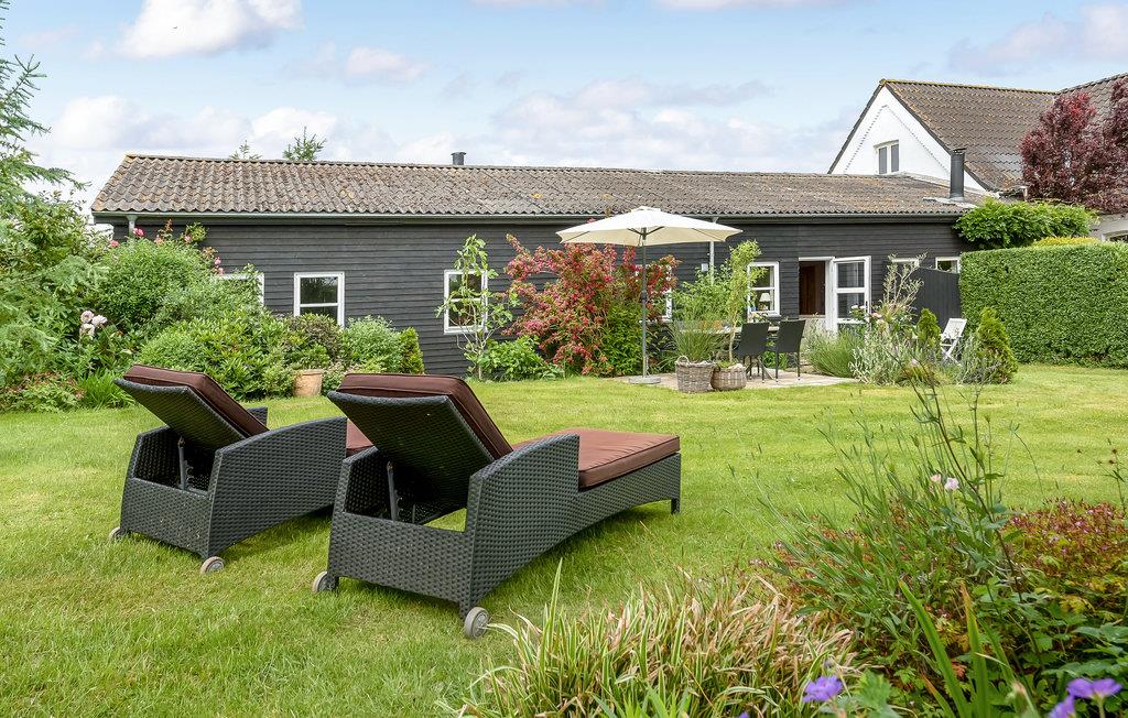 Fald helt til ro, og glem for en stund hverdagens stress og jag, når blikket får lov til at vandre udover markerne på den ene side af dette sommerhus. Her er flere gode terrasser, så solen kan følges rundt i løbet af dagen, og I haven er to loungestole, hvor det er oplagt at slå sig ned på en god bog. Haven er i øvrigt indhegnet af en stor hæk, så I får masser af privatliv.