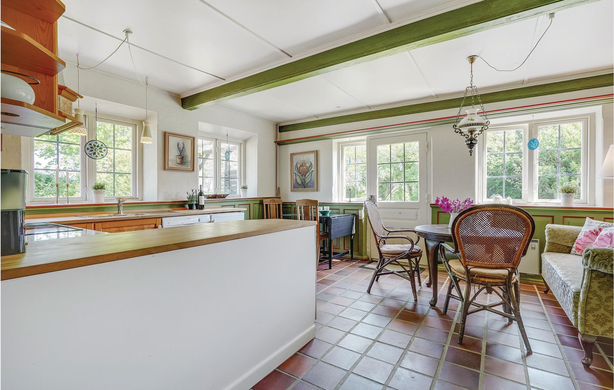 Denne charmerende ferielejlighed er beliggende i rolige omgivelser i en flot stråtækt ejendom tæt ved Østersøens klare vand og den familievenlige strand. Fra lejligheden og haven er der en flot udsigt over havet. Ferielejligheden er nænsomt renoveret gennem årene, og der er taget hensyn til de mange gamle fine og specielle detaljer. Den hyggelige og autentiske stemning fra det traditionelle landkøkken er bevaret. Også i opholdsstuen er indretningen og møbleringen tilpasset ejendommens stil. I stuen er der også en brændeovn, som I kan benytte på de kølige dage og aftener. Over alt i lejligheden kan I benytte den trådløse internetforbindelse. Har I brug for flere sovepladser, kan I også booke nabolejligheden, som har nummer F09452 hos os.