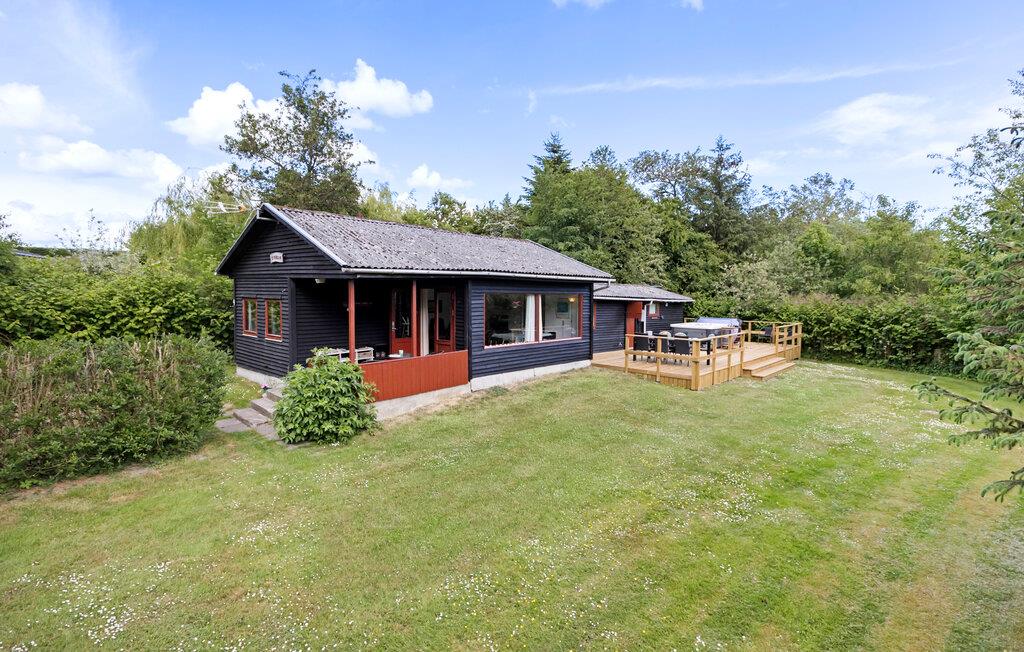 Fredfyldt feriehus ved Kegnæs Strand med udendørs spabad og naturskønne omgivelser til afslapning.