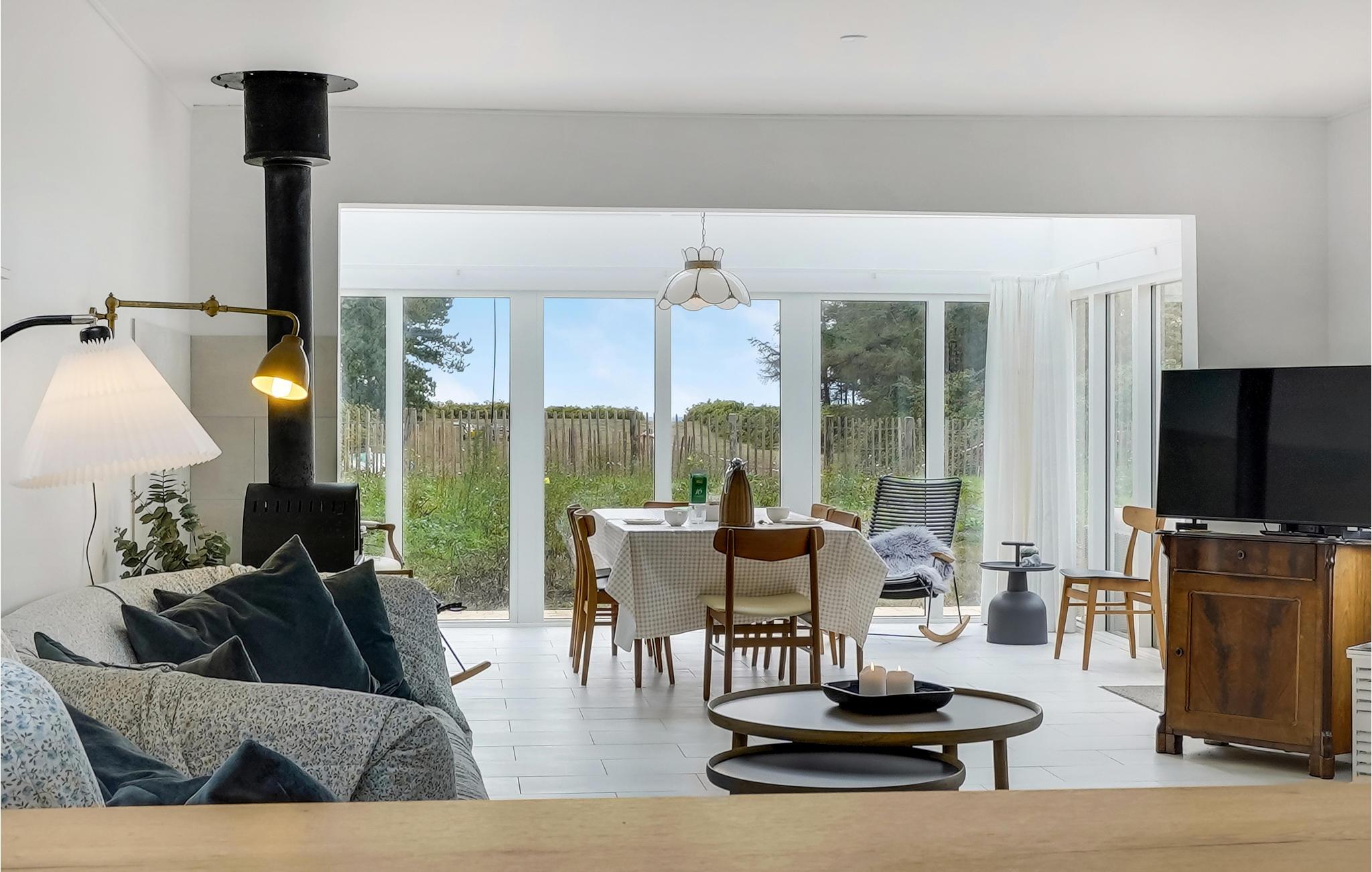 Dette skønne, lyse sommerhus er velegnet til en badeferie på Kegnæs, for her får I nogle dejlige rammer til livet både indendørs og udenfor. Den rummelige og moderne stue er husets hjerte og bliver jeres naturlige mødested. Fra spisepladsen, med store vinduespartier, kan I se havet. En smuk, flot terrasse giver jer et dejligt sted at slappe af i solen eller klargøre lækre ferieretter på grillen.