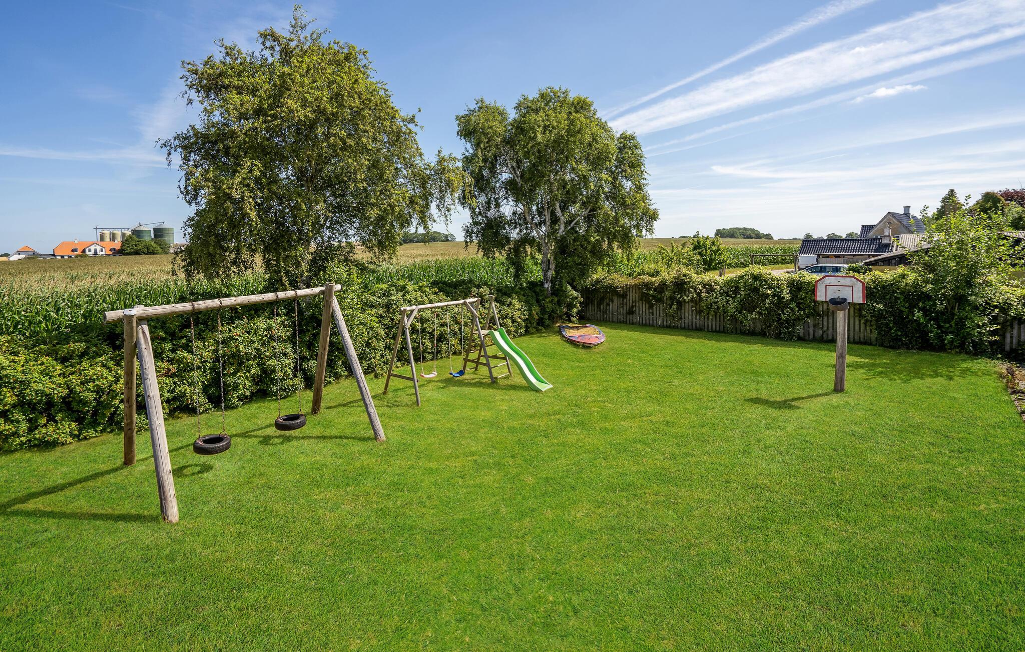 Terrassen lige foran huset lægger op til hyggestunder, mens børnene kan nyde den friske luft på gyngerne, rutsjebanen og klatrestativerne. Begynd dagene med en kop kaffe udenfor og læg planer for den nye dag. Om aftenen kan I slappe af med et glas vin og en god samtale om dagens bedste oplevelser.