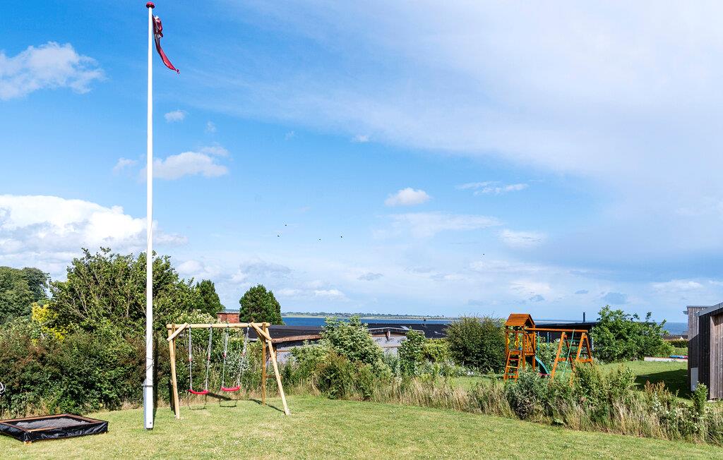 Den store træterrasse lokker med komfortable liggestole og en hyggelig spiseplads. Se børnene have det sjovt, mens de nyder de forskellige legemuligheder, og gør klar til en rolig grillaften efter en svømmetur på den nærliggende strand.