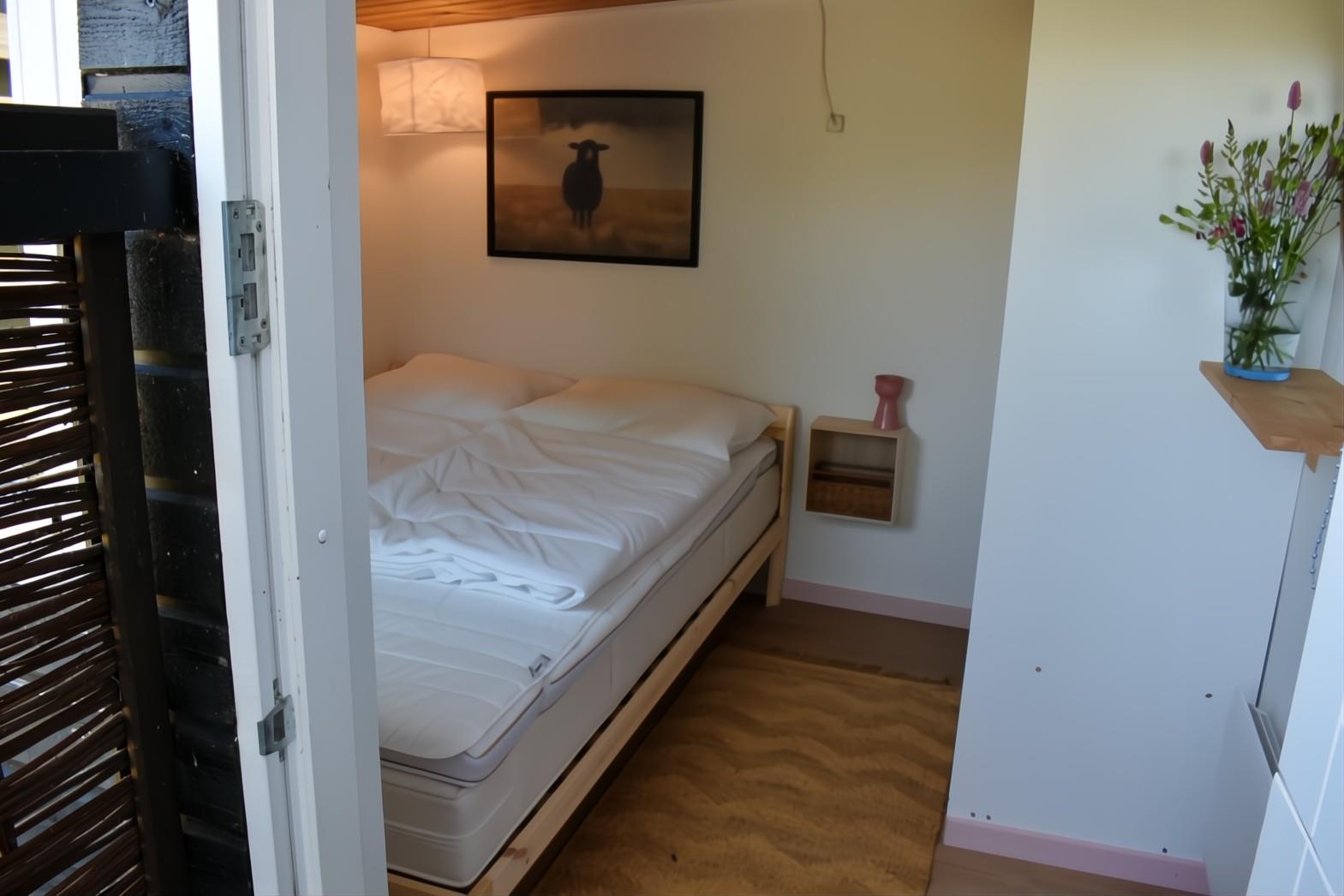 Sommerhuset har 3 soverum, et med en dobbeltseng (120cm) et lille soverum med 2 køjer samt et lyst og indbydende anneks med en dobbeltseng (140cm). Pænt badeværelse med brusekabine og vaskemaskine. Fra stuen er der adgang til en skøn, overdækket terrasse samt en pergola, hvor udelivet rigtig kan nydes. Grunden er helt indhegnet. Der er parkeringsplads ved fjorden ca. 50m fra huset.