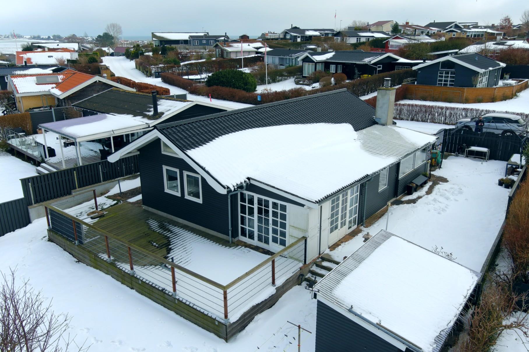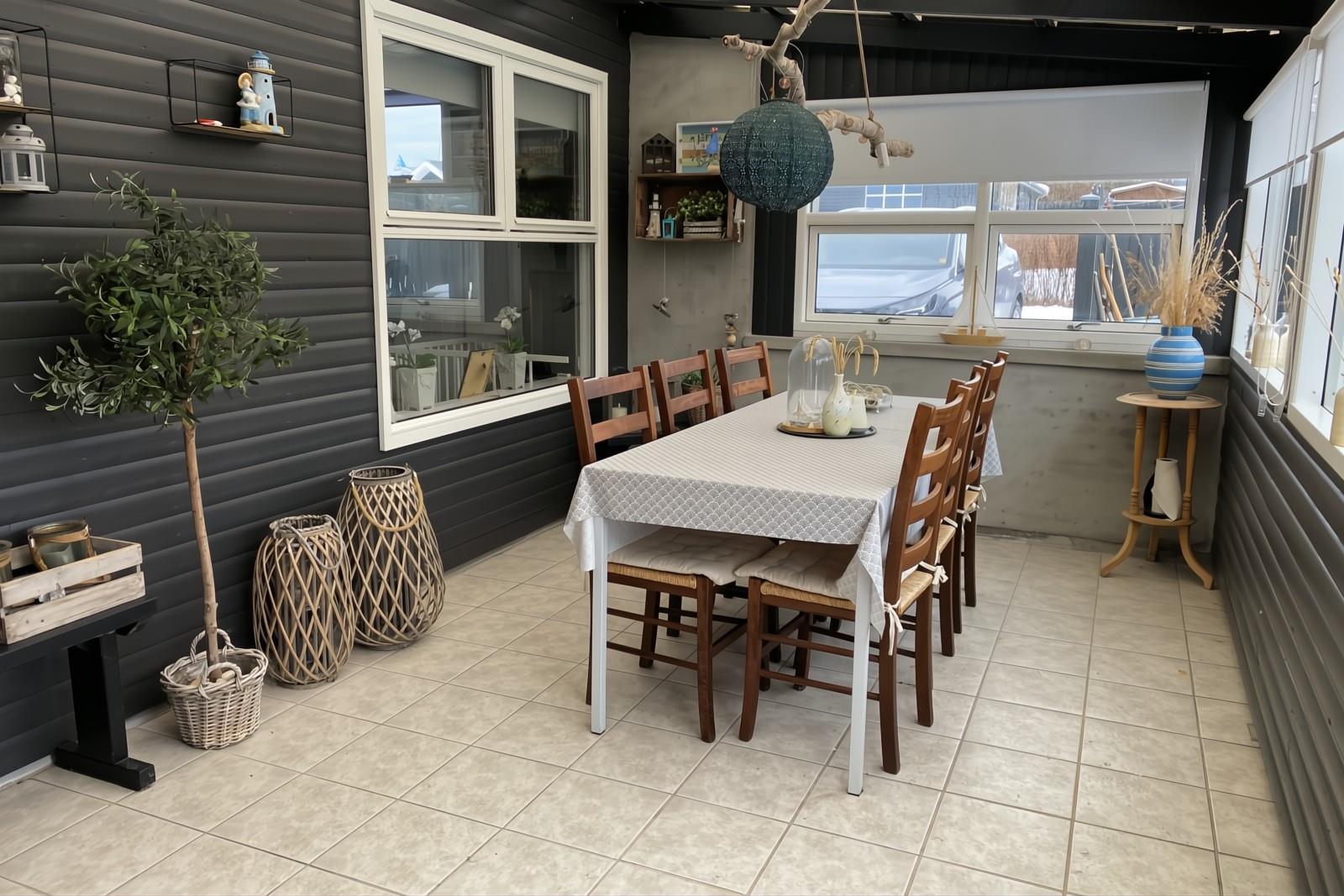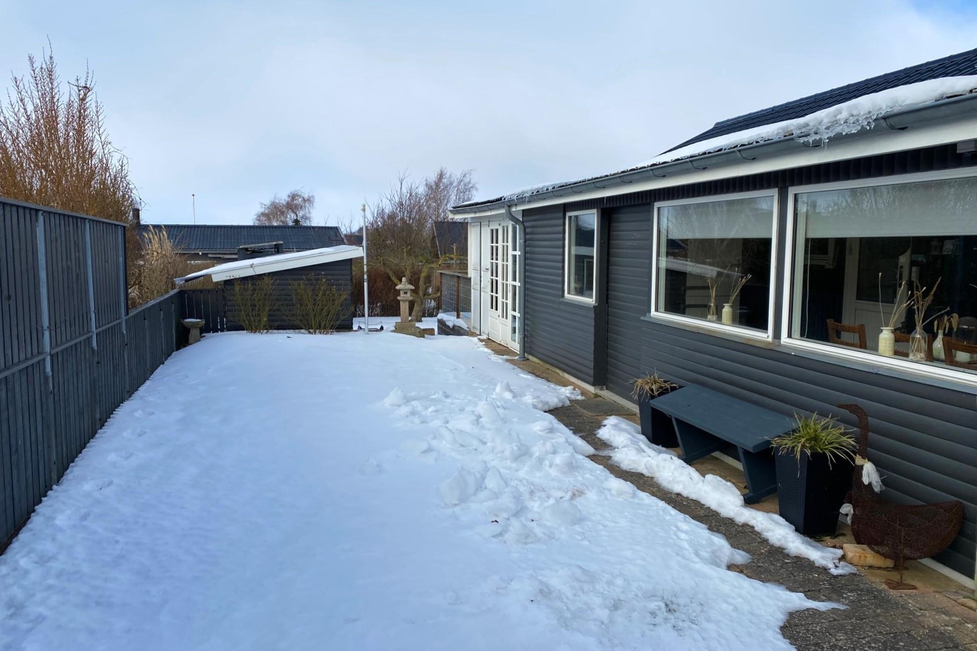 I baghaven venter en stor, åben træterrasse – perfekt til afslapning, grillhygge og lange sommerdage. Derudover byder huset på endnu en skøn havestue med store vinduespartier, som inviterer sol og varme indenfor allerede fra det tidlige forår.
