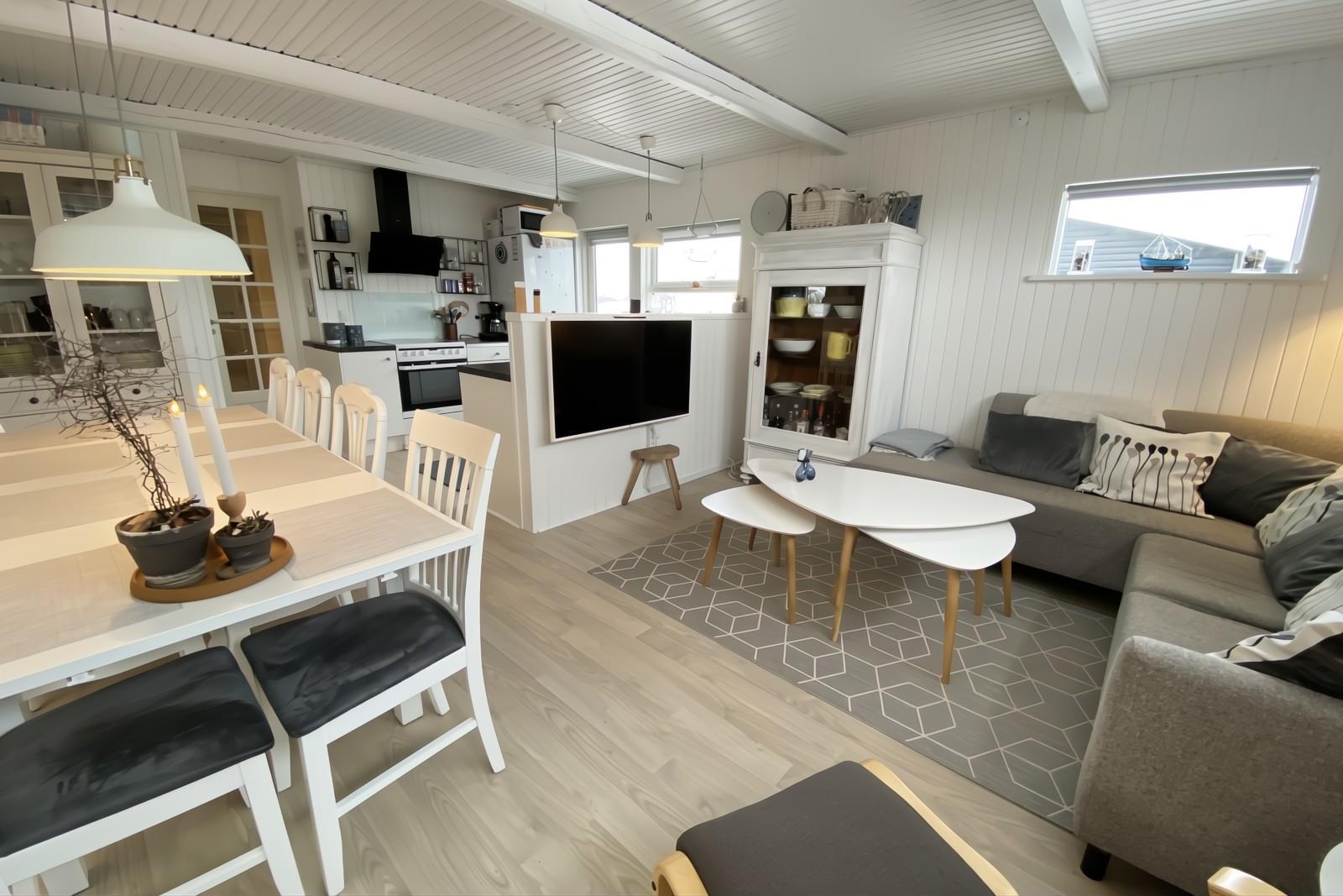 Dette indbydende sommerhus blev renoveret i 2017 og samtidig udvidet med en helt ny værelsesafdeling. Her får I tre soveværelser med dobbeltsenge samt TV i alle rum. Afdelingen rummer desuden et rummeligt badeværelse med både vaskemaskine og tørretumbler.