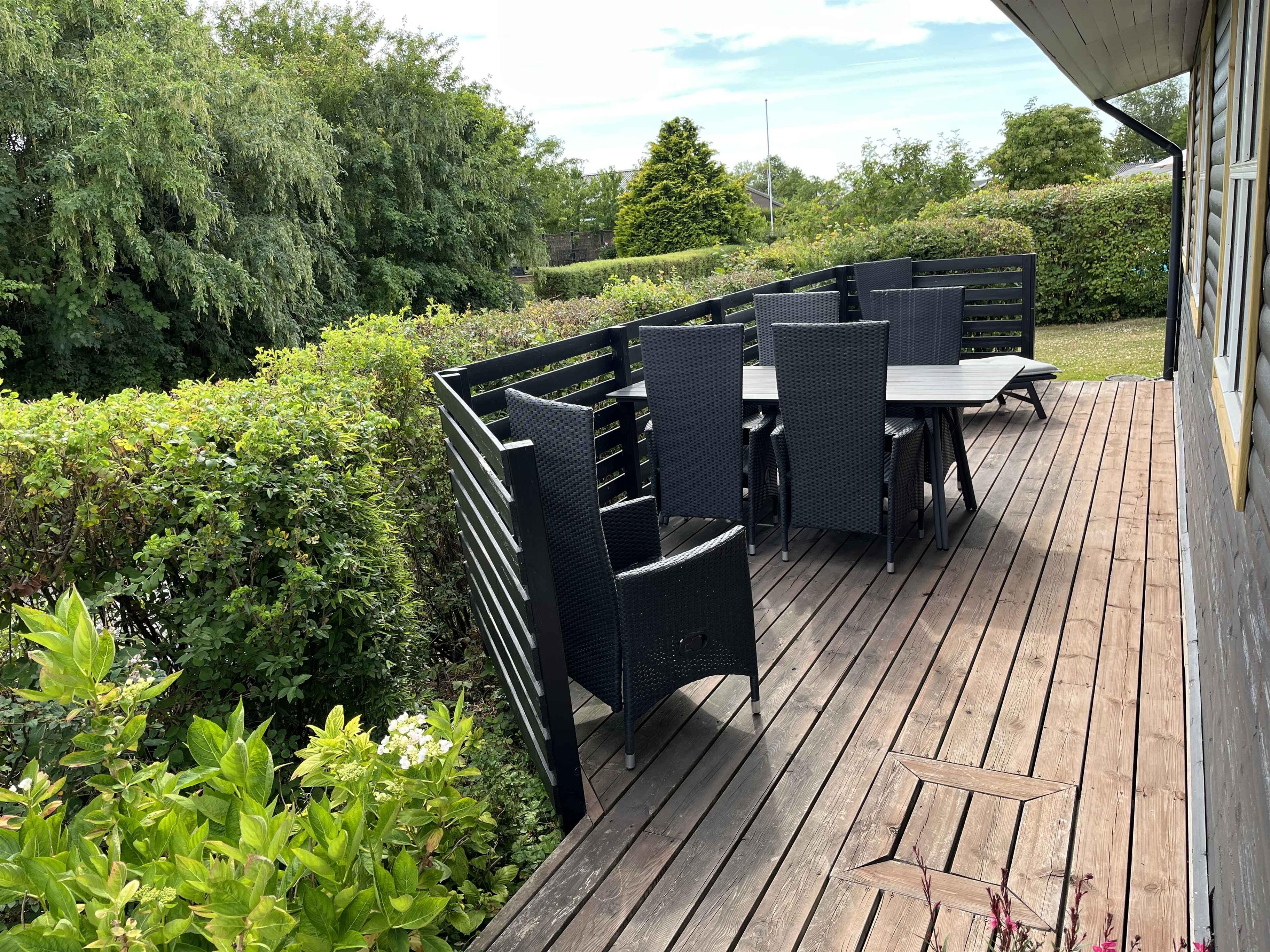 Hyggeligt sommerhus i Kerteminde med have, flere terrasser, nær strand og by.