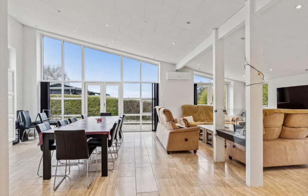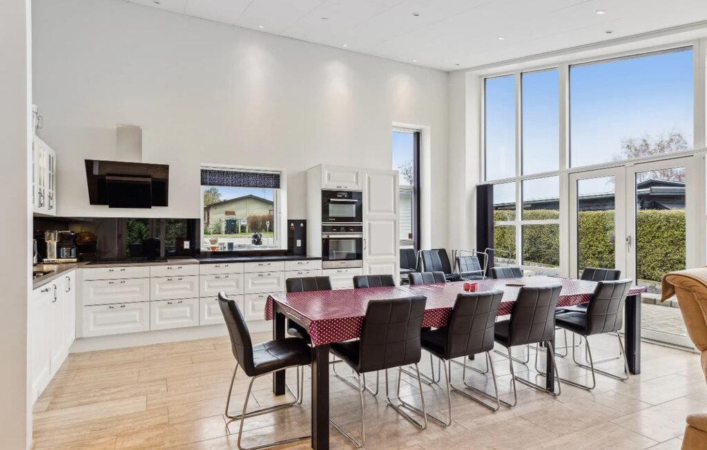 Dette rummelige hus tilbyder de ideelle rammer for ubekymrede dage. En lys stue lægger op til at slappe af i sofaen, hvor I kan nyde en storslået udsigt til husets grønne rammer. Nyd en afslappet kop kaffe, nyd hyggelige måltider ved det store spisebord eller tilbring sjove aftener med at spille bræt- og kortspil.