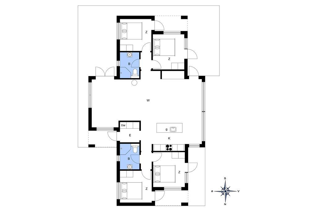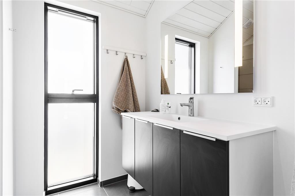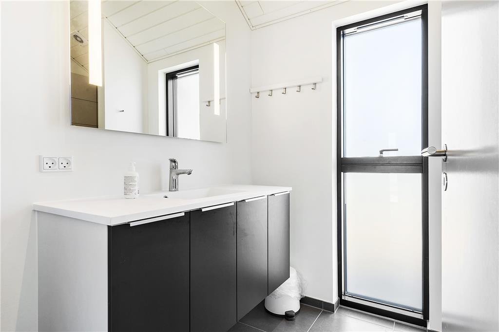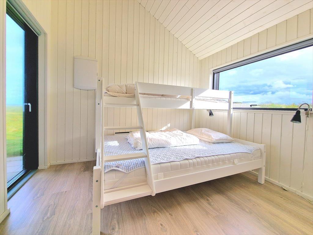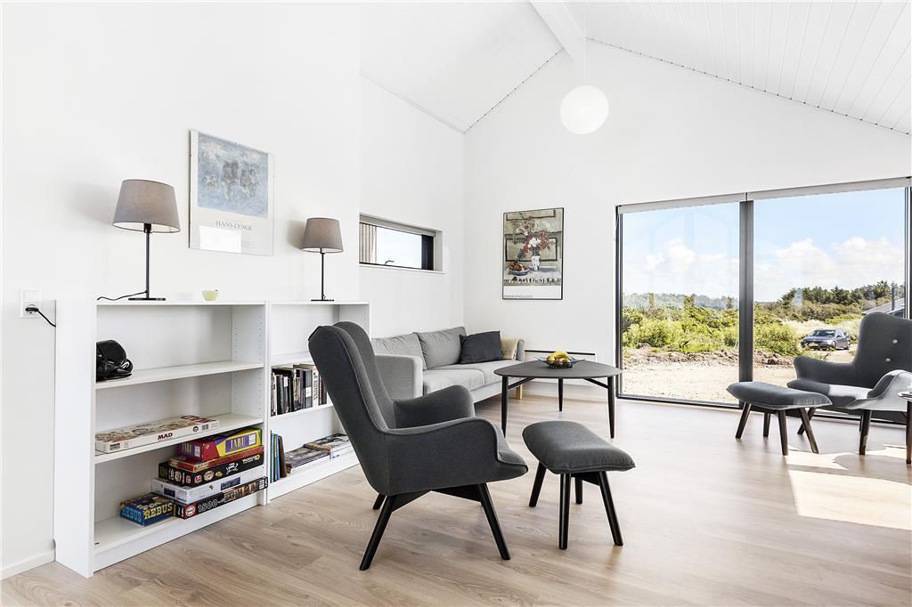 Det lyse og moderne feriehus blev bygget i 2017 og er indrettet med et stort centralt køkken-alrum, som er perfekt til både madlavning og samvær. Her kan du stå og tilberede dagens måltid, samtidig med at du nyder den imponerende udsigt over havet og naturen gennem de store vinduespartier, der går fra gulv til loft. Med loft til kip og et åbent rumforløb får du en fantastisk rummelighed og lysindfald. Brændeovnen giver en hyggelig stemning på kølige dage, og varmepumpen sikrer en behagelig temperatur året rundt. Sommerhuset har to soveafdelinger, hver med to værelser og badeværelse, og begge afdelinger har udgang til en terrasse, hvor du kan nyde den friske havluft og den smukke udsigt. Hvert værelse er indrettet med fokus på komfort og afslapning, så du kan trække dig tilbage til roen efter en aktiv dag i naturen.