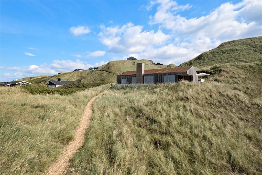Fra parkeringspladsen, skal man gå ca. 35 meter op ad en lille sti, for at komme til huset som ligger på en stor naturgrund i klitterne, omgivet af marehalm og små bakker. Hele huset er omkranset af et flot terrasseareal, så man altid kan finde en plads i solen. Mod vest har man den betagende havudsigt, mens man på østsiden kan opholde sig helt ugeneret og i læ for vinden. Her er også opsat et flot udendørs spakar og en bruser, så det danske sommerliv kan udnyttes fuldt ud.