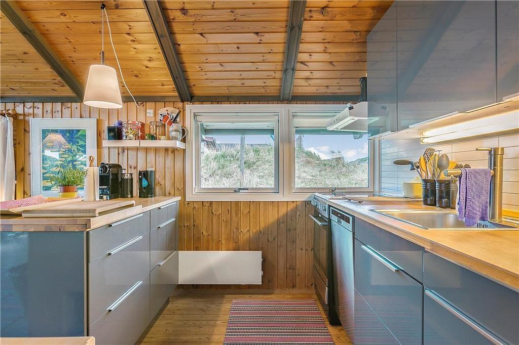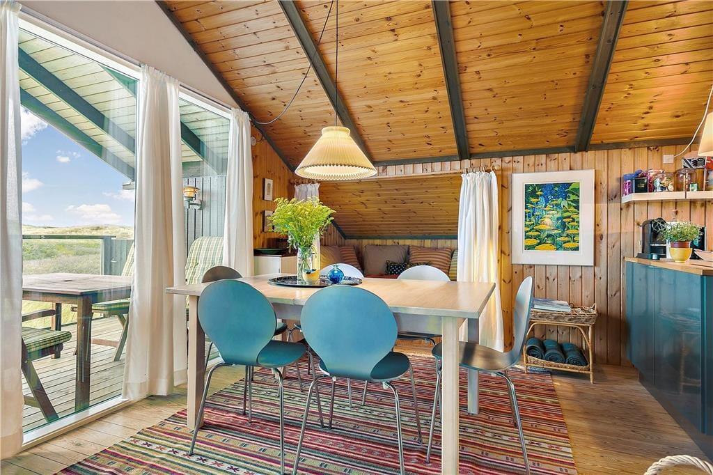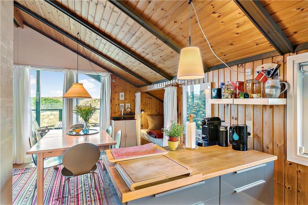 I kommer til at holde ferie i første parket til Vesterhavet her på Ruthsvej 12 i Kettrup Bjerge. Fra klitgrunden, som dette charmerende sommerhus ligger på, er der kun 150 meter til stranden, så det er særdeles nemt at fylde feriedagene med friske dukkerter, leg i sandet og gåture langs med kysten.
