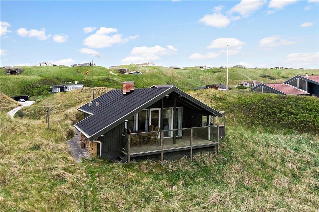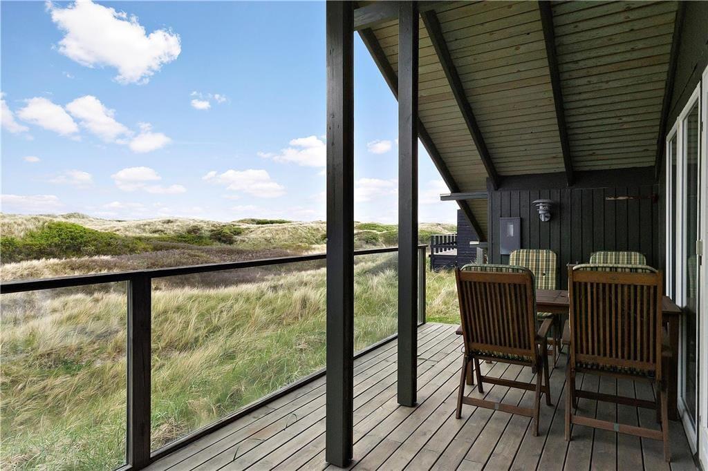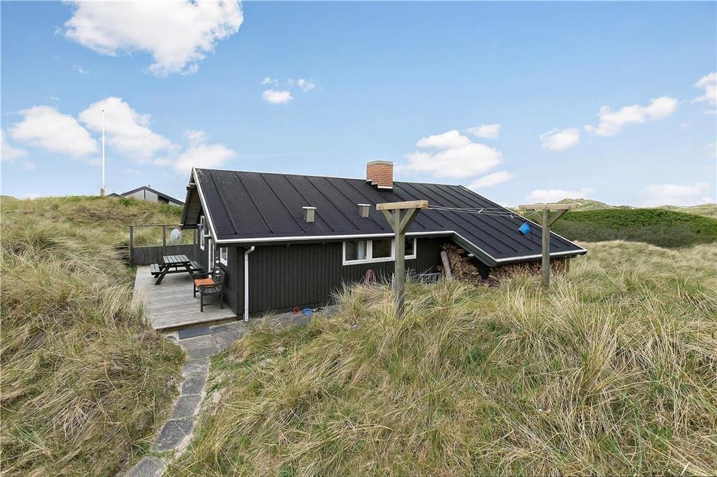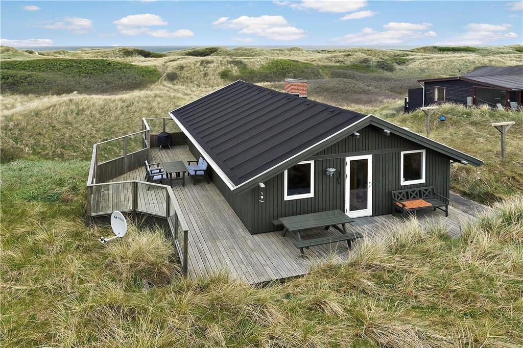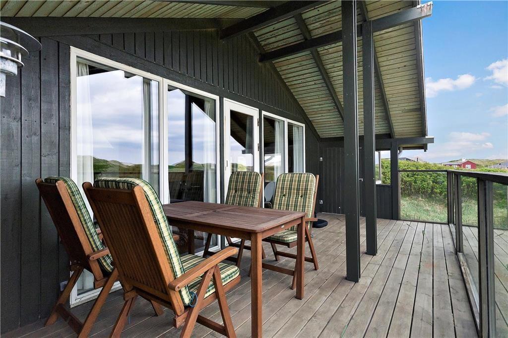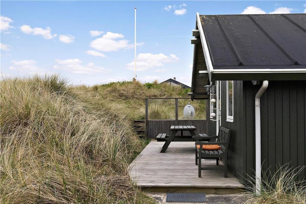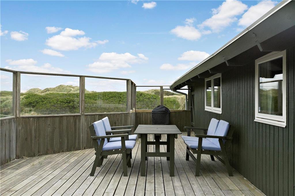 Høj sol, duften af frisk saltvand og udsigt til bølgende marehalm går godt i spænd, og hele herligheden kan nydes, når I slapper af på husets store klitgrund. Dejlige træterrasser breder sig om tre af husets sider, så I kan sætte jer lige der, hvor solforholdene er bedst. Mod vest og syd er terrassen skærmet af for vinden, og vestterrassen er desuden delvist overdækket.