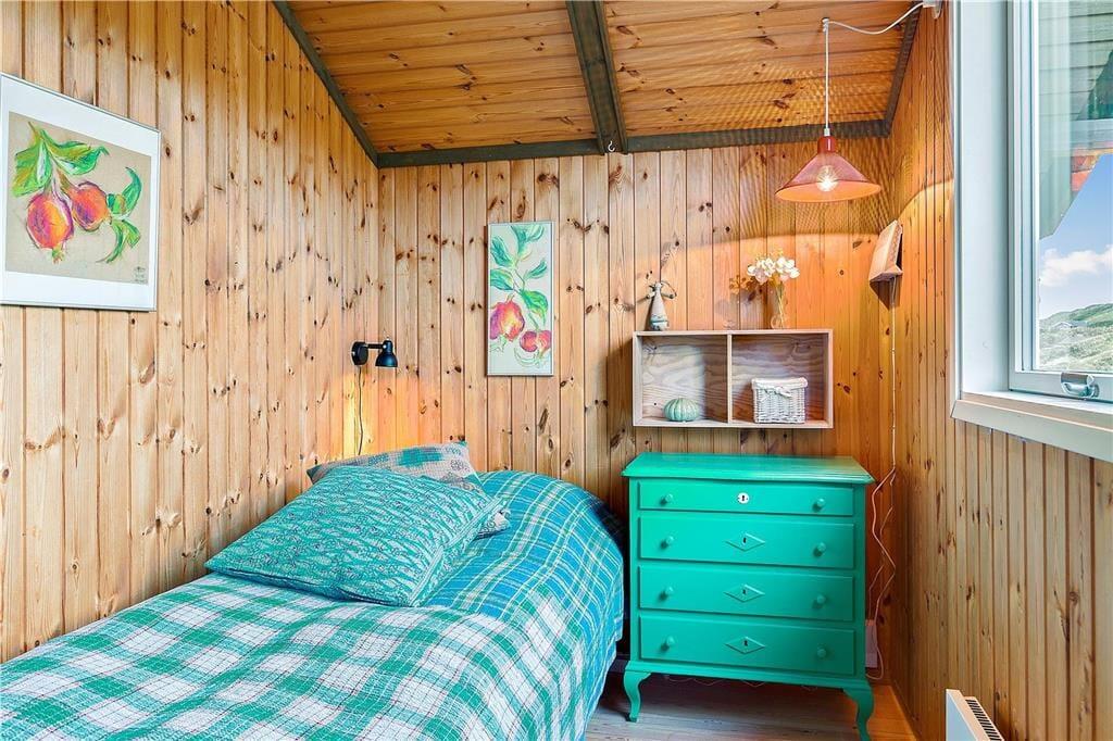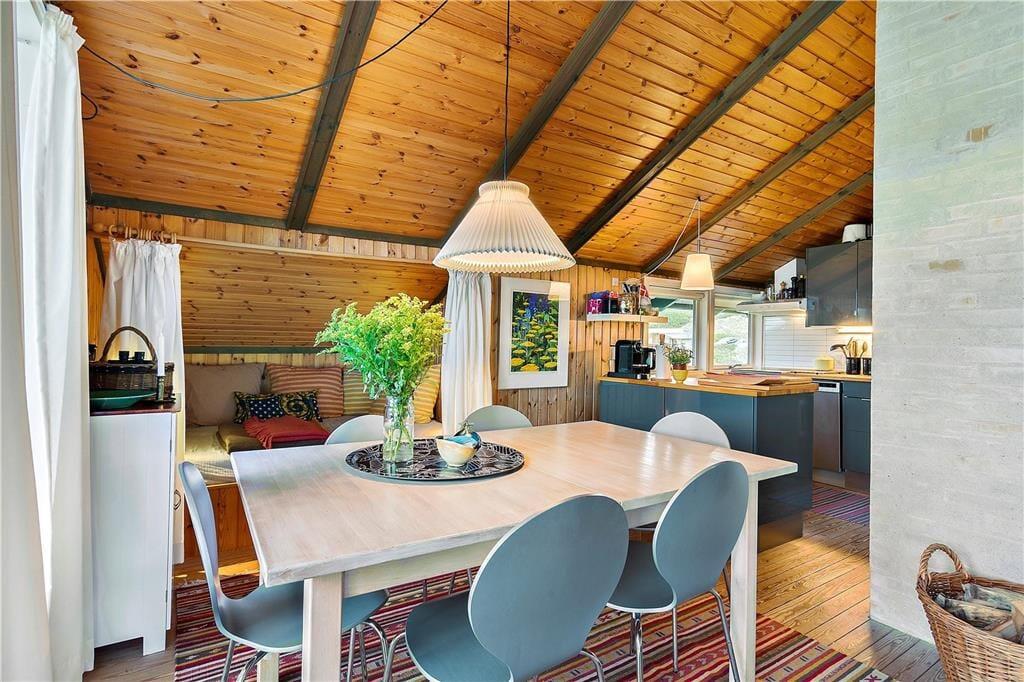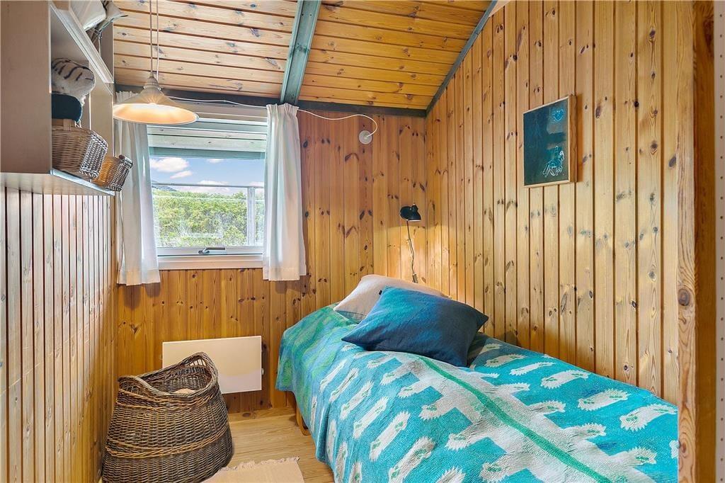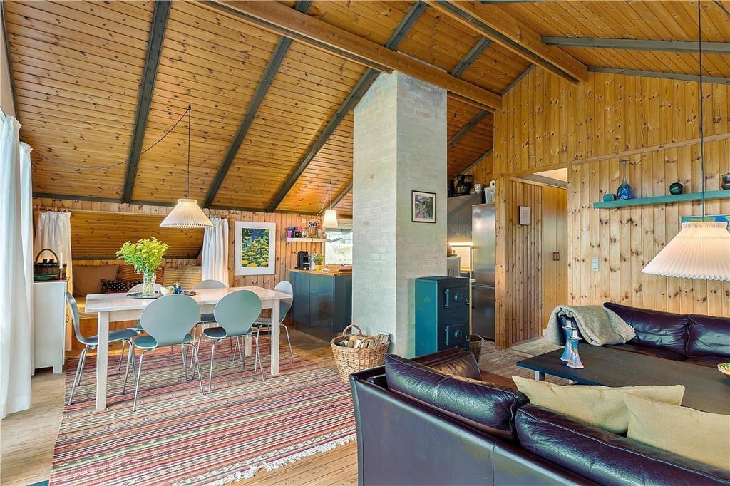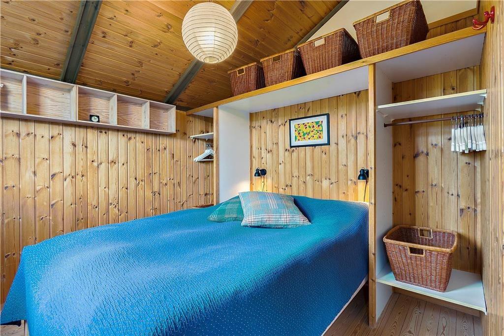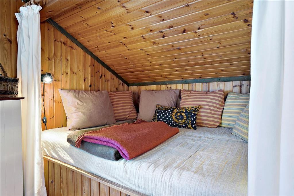Når I ikke tilbringer tiden i vandkanten, er det skønt at være inden døre i sommerhuset. Med en dejlig stue med integreret køkken, et badeværelse med vaskemaskine og tre soveværelser – hvoraf et er indrettet med dobbeltseng og de to øvrige med en enkeltseng – er planløsningen glimrende udformet til fire personer. Alle rum er utroligt charmerende indrettede, og med loft til kip og rustik træbeklædning på væggene er sommerhusstemningen helt i top. Det gælder ikke mindst stuen, som desuden byder på en brændeovn og en alkove: Det må siges at være en perfekt form for ferieafslaping at ligge her med en god bog i varme og trygge omgivelser.