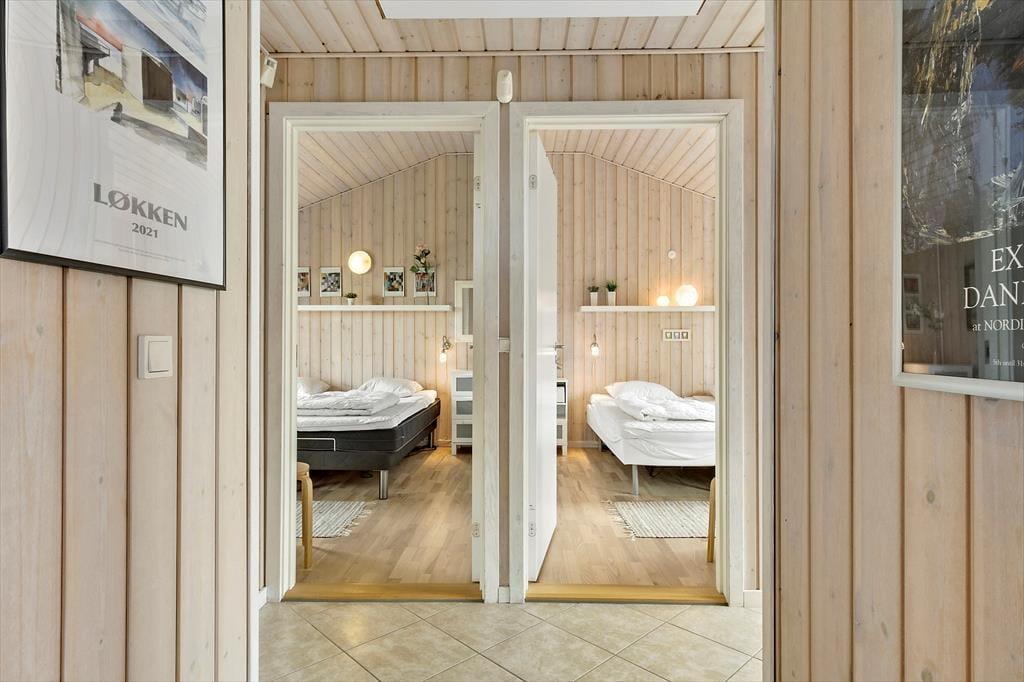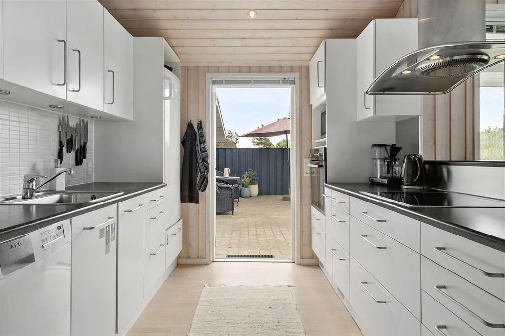 Rundt om sommerhuset er der flere terrasser at vælge imellem. Den ene ligger på samme niveau som stuen, så det er herfra, at udsigten til Vesterhavet er allerbedst – men det er nu også skønt at sidde under overdækningen eller på den sydvendte terrasse, der fremstår som en hyggelig gårdhave og ligger skønt i læ. På den 2620 m2 store naturgrund står der desuden en bænk, som er perfekt til en stille stund, mens I ser solen gå ned og suger naturindtrykkene til jer.