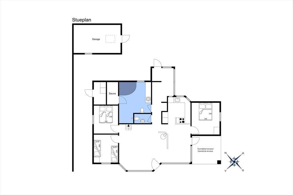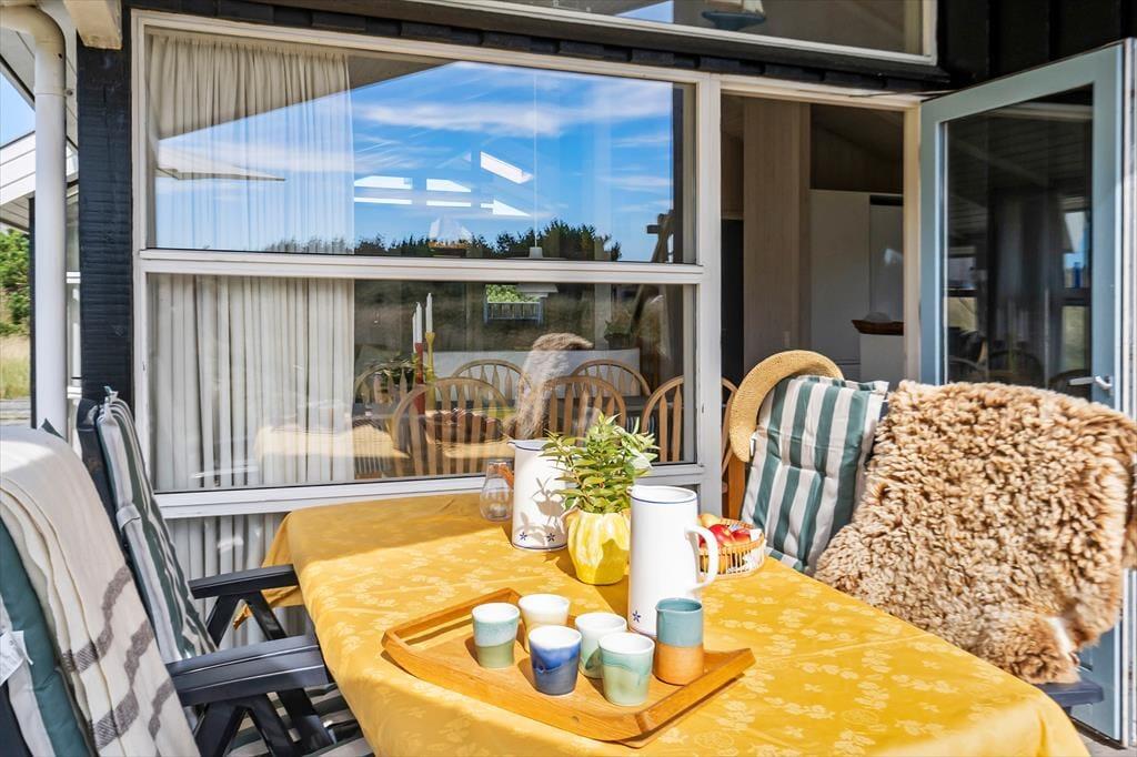 Inden døre kan du se lige ud på bølgende marehalm og spredte fyrretræer under den høje himmel, så selv når du er inden døre, kan du mærke nærheden til naturen. På typisk sommerhusmanér er der lys træbeklædning og loft til kip, og en brændeovn hører selvfølgelig også til i stuen – foruden en stige, der fører op til en hems, hvor børnene kan lege eller måske endda overnatte. Det lyse og rummelige hus byder for øvrigt på tre gode soveværelser, et gæstetoilet og et badeværelse, og sidstnævnte skal du især lægge mærke til, hvis du er vild med wellness, for her er der spabad og sauna. Det tilhørende anneks kan bruges til flere ting: Bordfodboldbordet og tv’et kan underholde familien, og sovesofaen kan bruges som ekstra soveplads for to personer. Derudover er der et skrivebord med to kontorstole, hvis nogen har lyst til at spille computer eller har behov for at fordybe sig i arbejde.