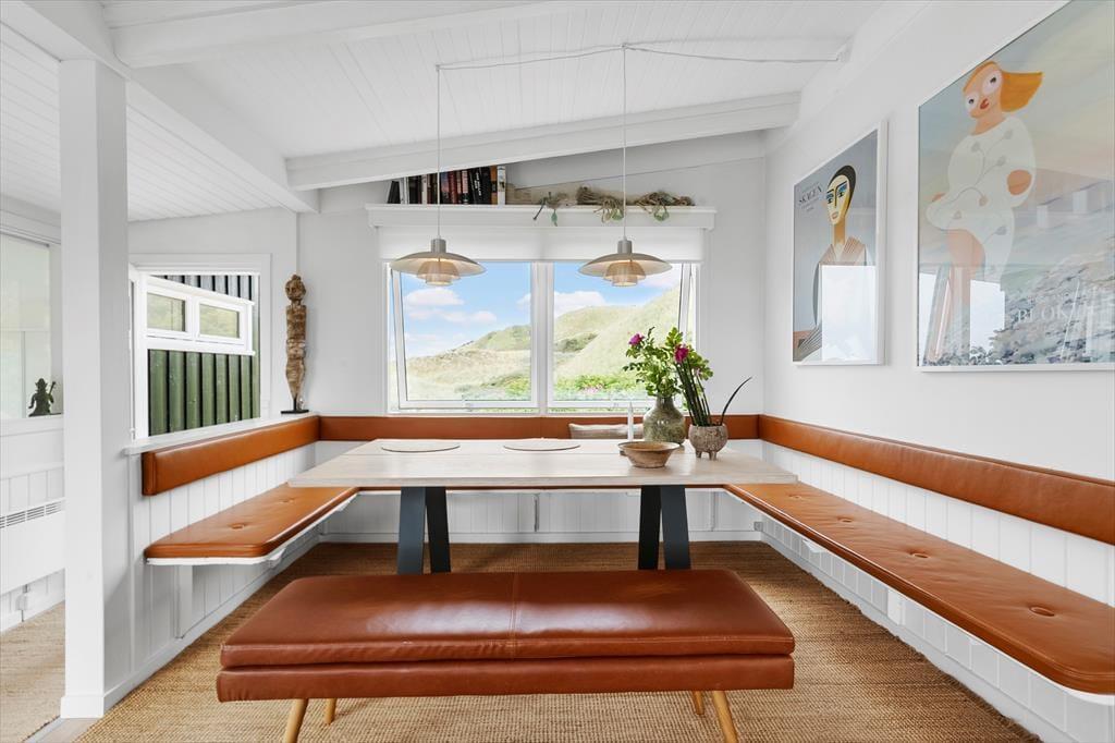 På sommerhusets store naturgrund kan du lade skuldrene sænke sig og nyde den friske havluft i fred og ro. Her venter både åbne og overdækkede terrasser, hvor du kan nyde morgenkaffen med havudsigten som bagtæppe eller finde læ for vinden med en god bog i hånden. Om aftenen kan I samles om grillen og nyde en god middag under den åbne himmel, mens solen dykker ned bag klitterne i horisonten. De kuperede omgivelser omkring Kettrup Bjerge giver oplevelsen af at være helt tæt på naturens egne former og farver – det er ikke usædvanligt at spotte harer eller fasaner på grunden, mens du nyder en stille stund på terrassen. Her er plads til både stille refleksion og fælles samvær – og lige præcis den type uforstyrrede ro, som feriedrømme er gjort af.