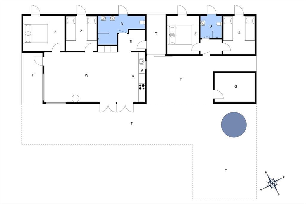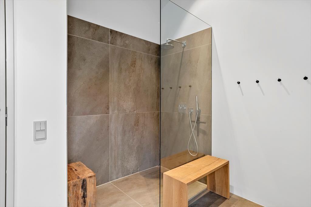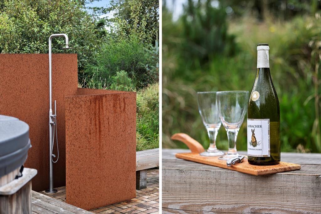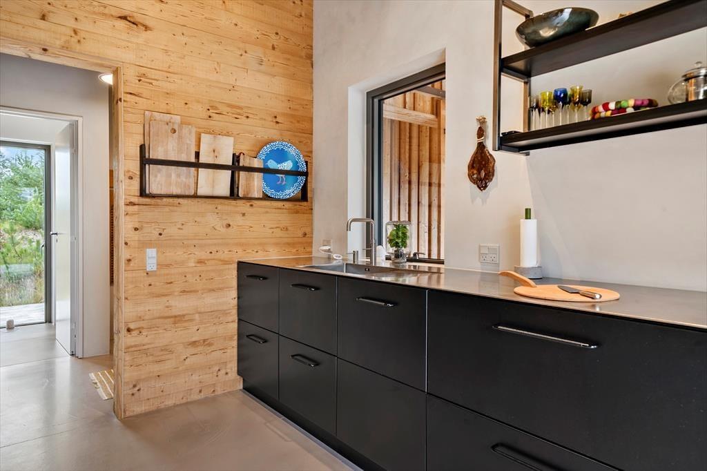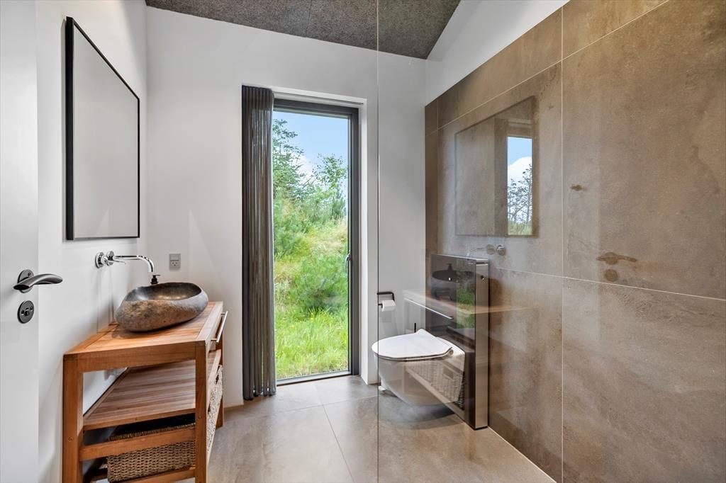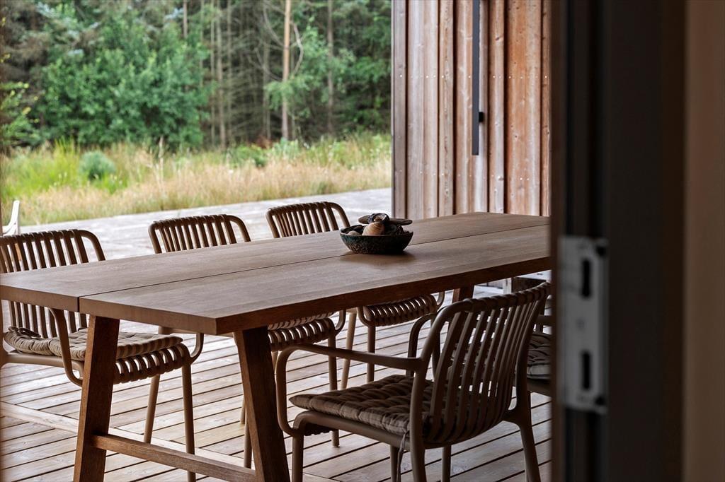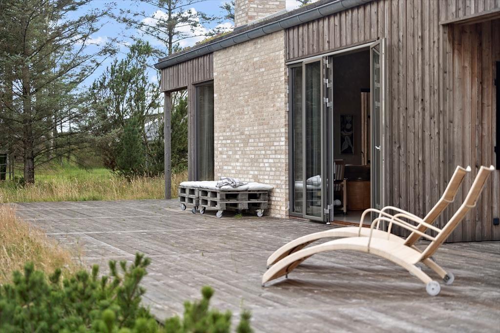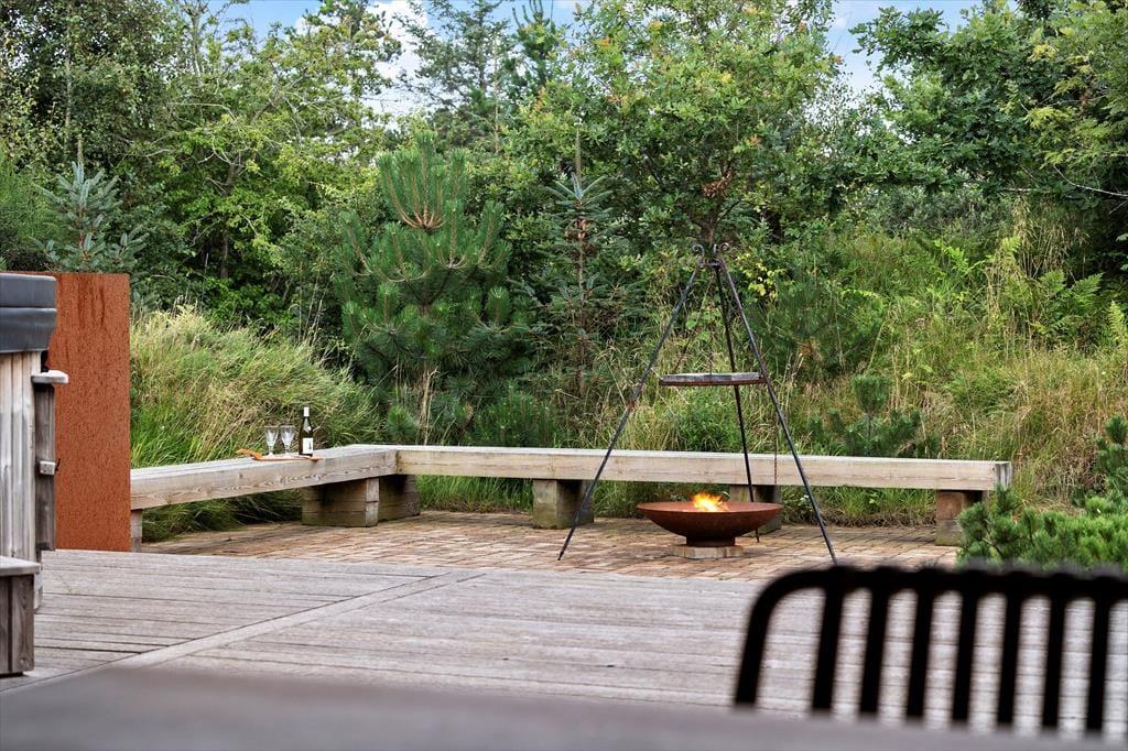 Haven er en sand oase, hvor naturens ro og lyde sætter scenen for ægte sommerhusstemning. Den store terrasse indbyder til mange timer under åben himmel – uanset om du vælger at nyde solen i en liggestol, samles om grillen til aftensmad eller sidde under den overdækkede del, mens en let sommerregn drypper omkring dig. Vildmarksbadet giver en ekstra dimension af luksus og afslapning – perfekt til en stille aften under stjernerne – og udebruseren er oplagt efter en frisk tur i bølgerne. Den smukke naturgrund rummer både vild flora og et rigt dyreliv, som giver fornemmelsen af at være midt i en lille, privat naturpark.