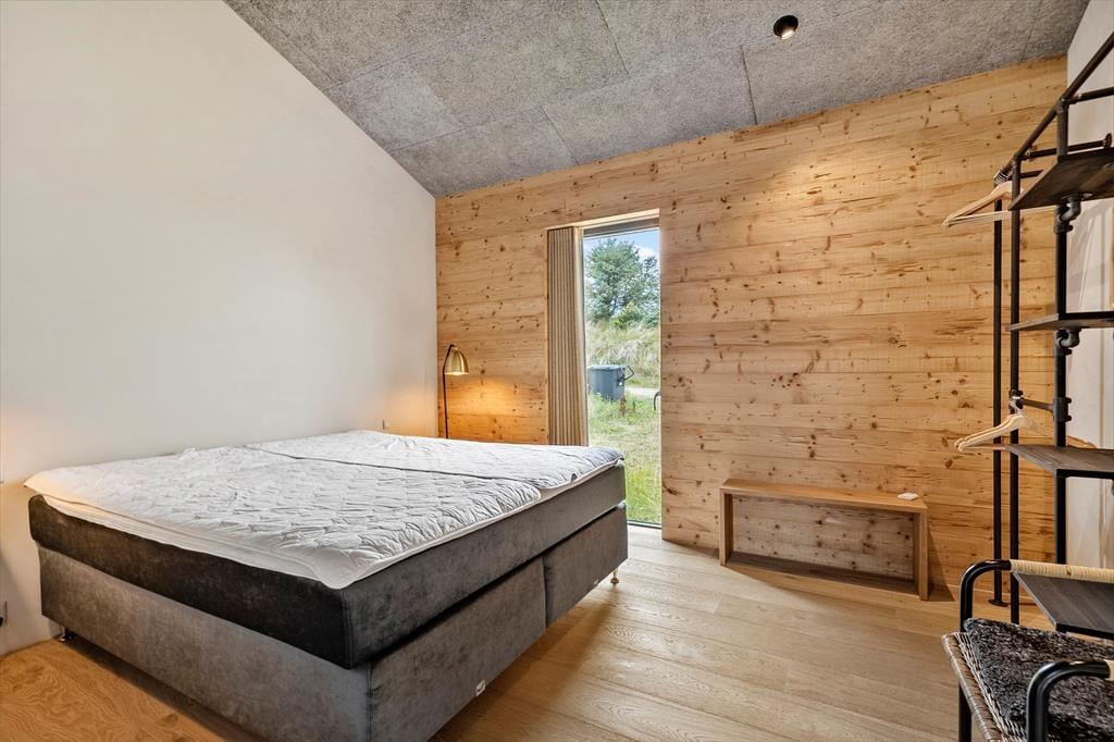 Hvis du drømmer om en ferie i fredelige omgivelser tæt på Vesterhavets brede sandstrande, er Stellavej 18 i Kettrup Bjerge et oplagt valg. Her får du et lyst og indbydende sommerhus med store vinduespartier, en skøn terrasse med vildmarksbad og masser af plads til afslapning under åben himmel. Den rolige beliggenhed for enden af en blind stikvej giver dig fred og privatliv – og med kun 600 meter til stranden er du altid tæt på havets brus.