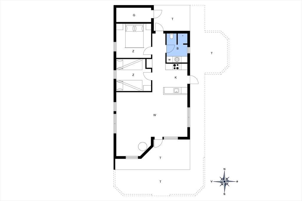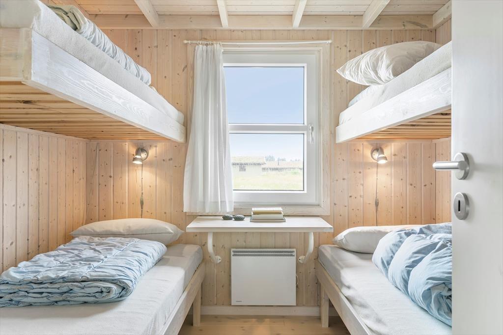 Sommerhuset er bygget i 2003 og er flot og velholdt. Store vinduer lukker lyset og den omkringliggende natur helt ind i rummet. Fra stuen er der direkte adgang til den skønne terrasse mod syd. Om aftenen kan I nyde den gode udsigt over naturen med syngende flammer i brændeovnen til at holde den gode stemning af sommerhusferie helt i top. Sommerhuset har to soveværelser, et med dobbeltseng og et med to køjesenge. Overfor soveværelserne ligger sommerhusets badeværelse med toilet og bruser. Sommerhuset er et perfekt valg for en hyggelig ferie for to personer såvel som for den lille familie.
