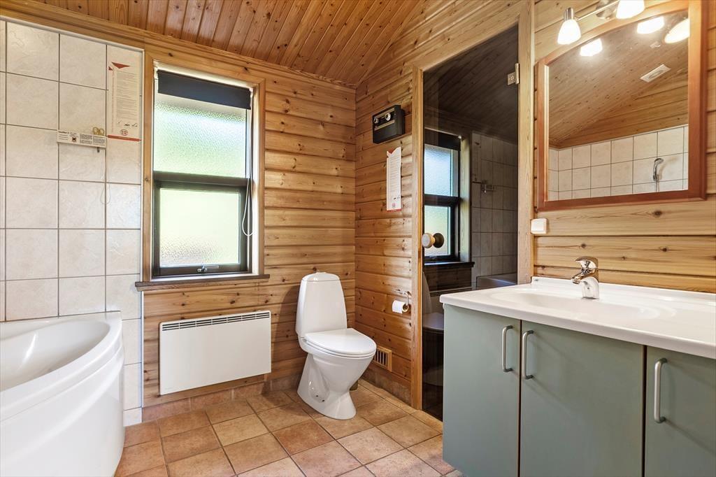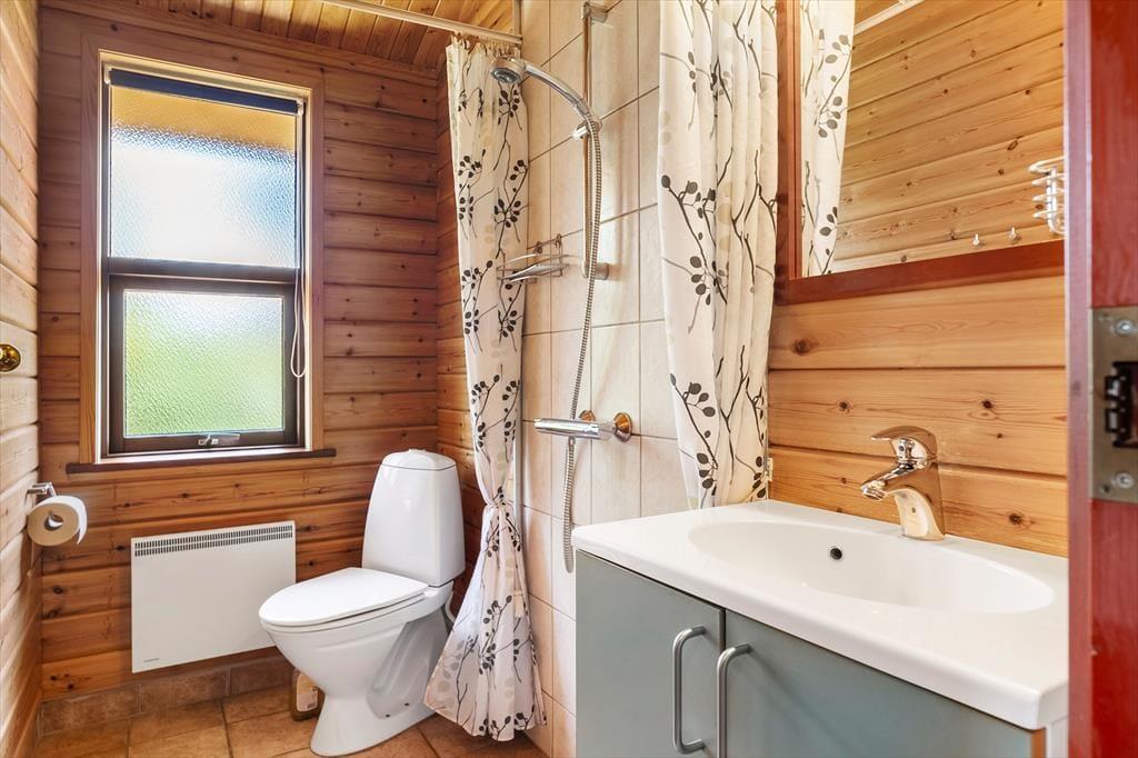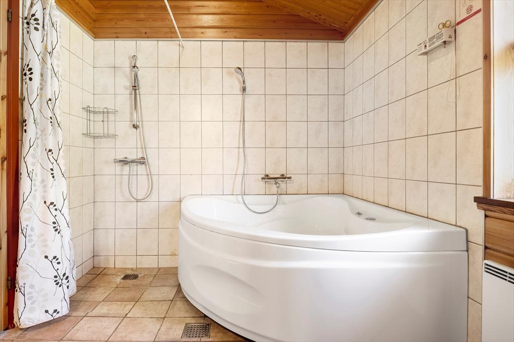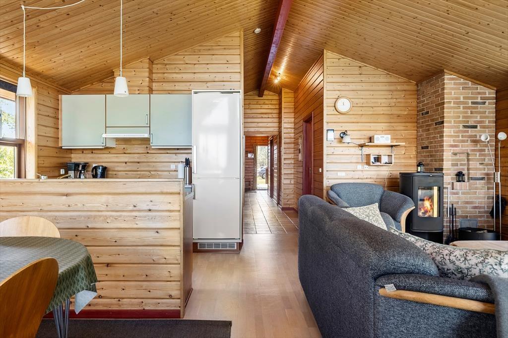 Dette meget velholdte feriehus har en dejlig varm og hyggelig atmosfære. Her er alle faciliteter til at skabe en vellykket og afslappende ferie; trådløst internet, brændeovn, gode hårde hvidevarer og derudover er det ene badeværelse udstyret med spabad og sauna, som gør at man kan koble helt af efter en lang dag ved stranden eller på tur rundt i dette naturskønne område. Huset råder over et godt og åbent køkken-alrum, stue, 2 badeværelser og fire soverum. Fra stuen er der en skøn udsigt over landskabet, og på grunden er der en lille idyllisk sø, som kan ses fra huset, og her kan opleves et rigt dyre og fugleliv. Huset indbyder virkelig til kvalitetstid og mange hyggelige stunder for hele familien.