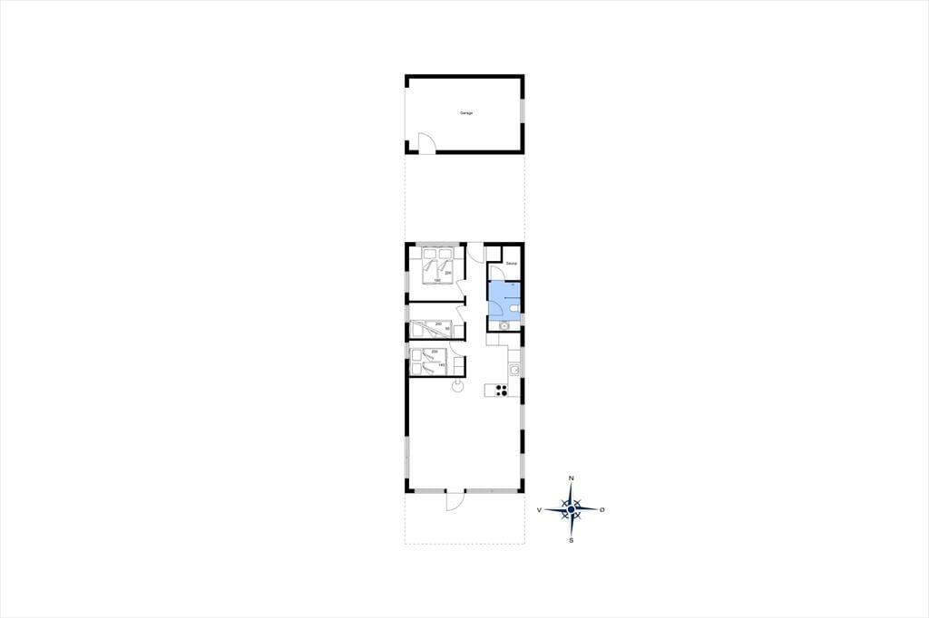 Sommerhuset er lyst og hyggeligt indrettet med fine og brugbare møbler, de nødvendige hårde hvidevarer, brændeovn og gratis og trådløst internet. De tre værelser og badeværelset med bruser, sauna og vaskemaskine ligger langs entreen, mens køkken og stue er placeret samlet i den sydlige del af huset; en praktisk opdeling, hvis man har mindre børn med på ferien, som stadig skal puttes tidligt. Man kan være op til fem overnattende personer i sommerhuset, så det er velegnet til både en familie og parferie, og i de hyggelige og anvendelige omgivelser er man sikker på at få en afslappende og minderig ferieoplevelse i Nordjylland.