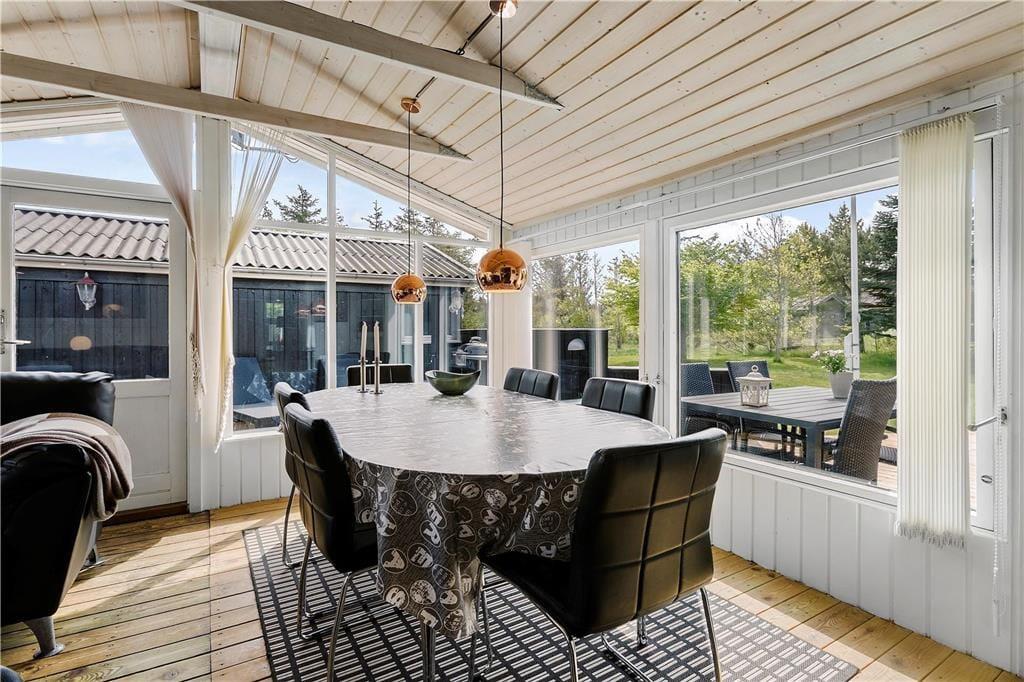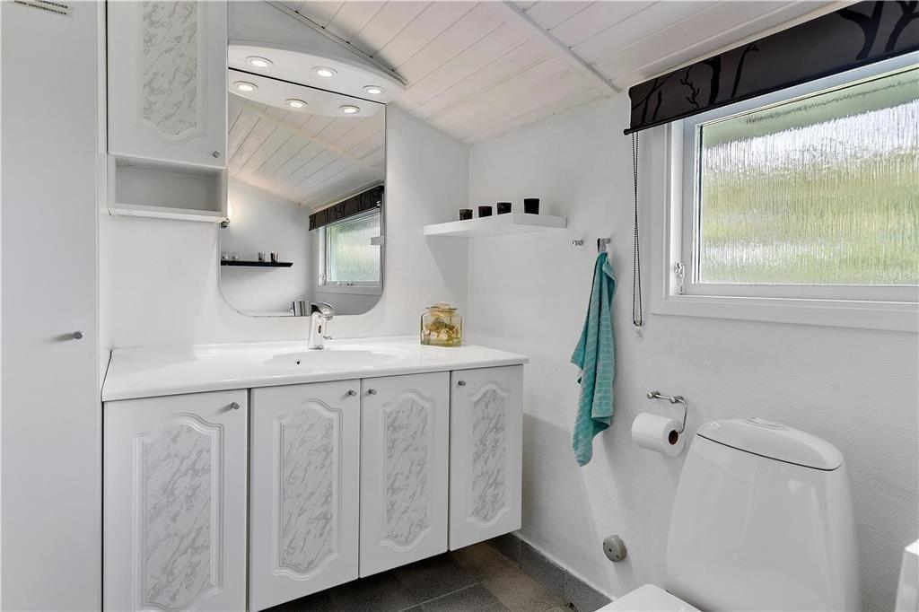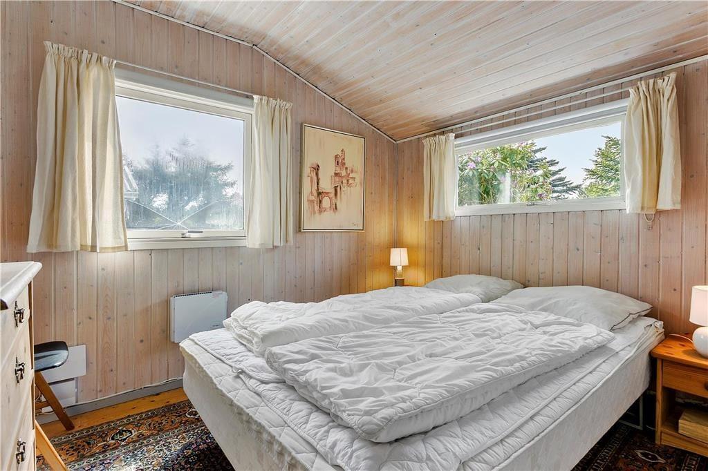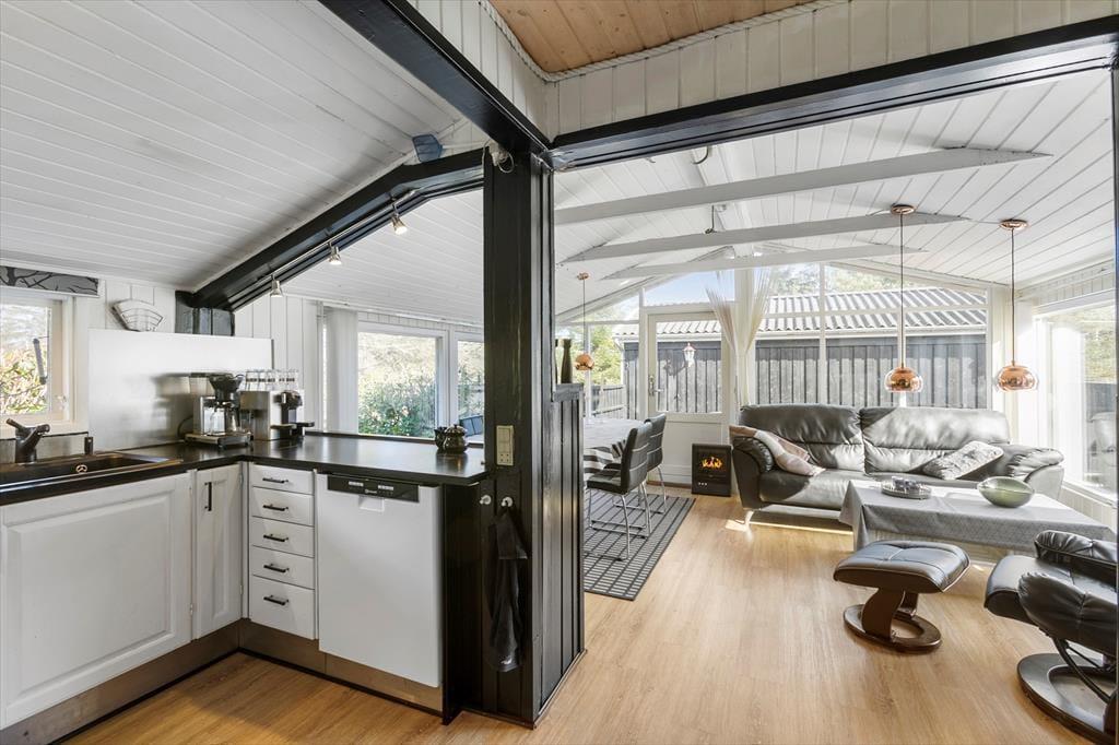 Dette ældre sommerhus byder på alle nødvendige faciliteter for en god og afslappende ferie. Et åbent køkken med direkte adgang til en dejlig og stor udestue med spiseplads og sidde arrangement. Her vil man med garanti komme til at bruge mange timer og når vejret indbyder til det, kan man herfra gå ud i en lille hyggelig solgård. I opholdsrummet finder man to sofaer med mange siddepladser og en god brændeovn, og også herfra kan man gå ud på en overdækket terrasse. Med tre værelser, hvoraf kun det ene har skabsplads, kan man overnatte 6 personer i sommerhuset og på badeværelset har man bruser, gulvvarme og en vaskemaskine. En god base for den næste familieferie i Nordjylland.