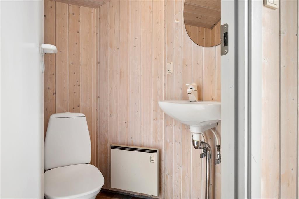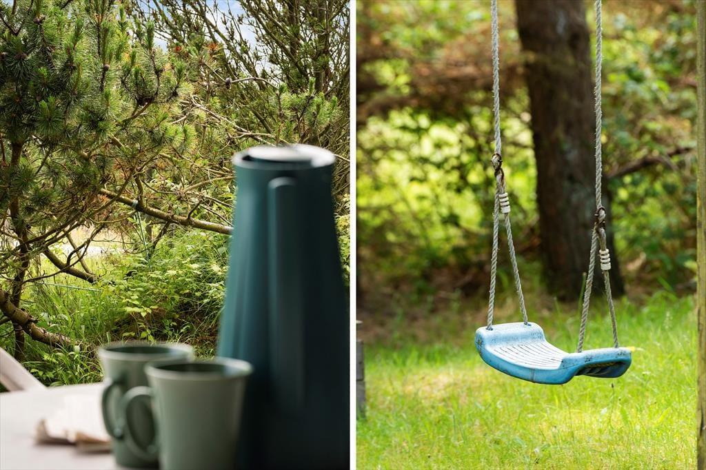 Sommerhusets udendørsareal er et kapitel for sig. Den store naturgrund er afskærmet af høje træer og man er derfor i behagelig afstand til naboer, og kan lade børnene lege trygt i sandkassen eller gyngerne. Man har udgang til to dejlige terrasser, den ene er overdækket, og her er fint at sidde, når duggen falder om aftenen.