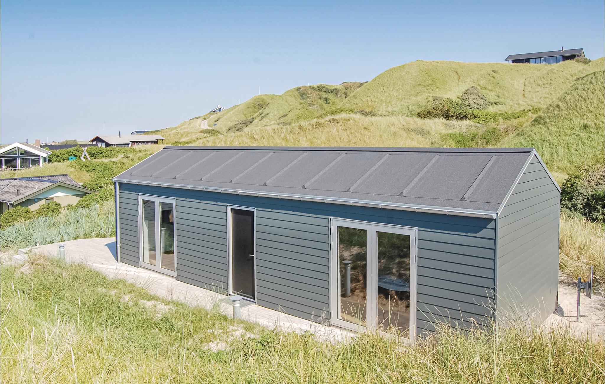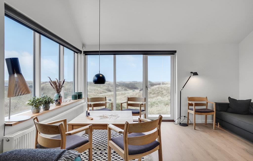 Højt beliggende på en åben naturgrund, ligger dette skønne sommerhus. Der er en flot udsigt til det kuperet klitlandskab, og fra terrassen ved det flotte anneks, det ligger ved siden af huset, er der udsigt til vandet. Huset er opført i kvalitetsmaterialer og har store vinduespartier samt loft til kip, der sørger for en charmerende stemning. Rummene er indrettet med moderne møbler, der passer fint ind i husets stil. Det åbne køkken er holdt i hvide elementer, den dejlige, rummelig stue har loftsvinduer og en skøn udsigt over området. Gode store soveværelser med trægulve og et lækkert badeværelse. Annekset indeholder to store soveværelser med dobbeltsenge og et indbydende badeværelse. Ved begge huse er en god terrasse med en vid udsigt.