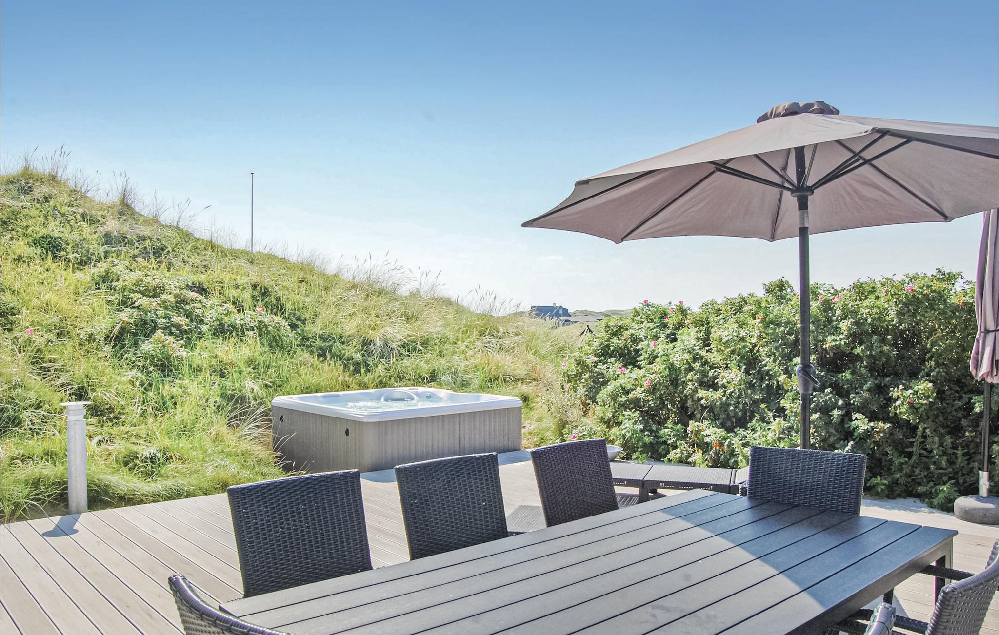 Skønt sommerhus nær Løkken med havudsigt, moderne indretning og udendørs spa til afslapning.