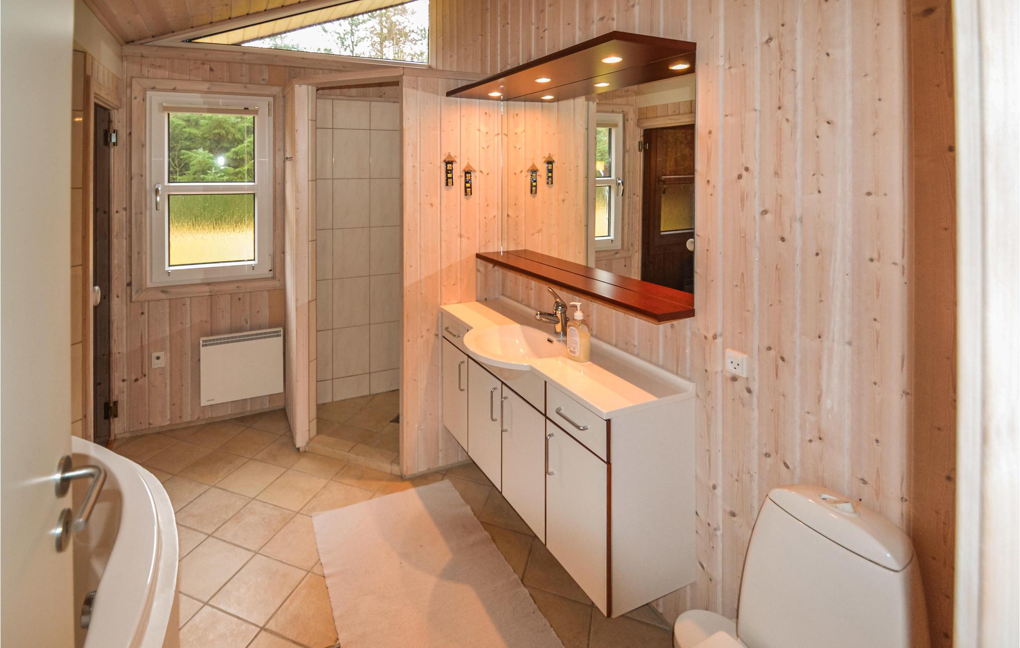 På en fredfyldt, stor kuperet naturgrund for enden af lukket vej, ligger dette skønne kvalitetshus med et stort og dejligt badeværelse med både spa og sauna. Huset er utroligt flot og godt indrettet med et centralt beliggende, åbent køkken med alle tænkelige faciliteter. En halvmur adskiller spisestuen og opholdsstuen. Stuernes store vinduespartier medvirker til en meget lys og venlig atmosfære. I alle værelser og stuen er der flotte trægulve. Denne perle af et feriehus ligger centralt mellem Blokhus og Løkken.