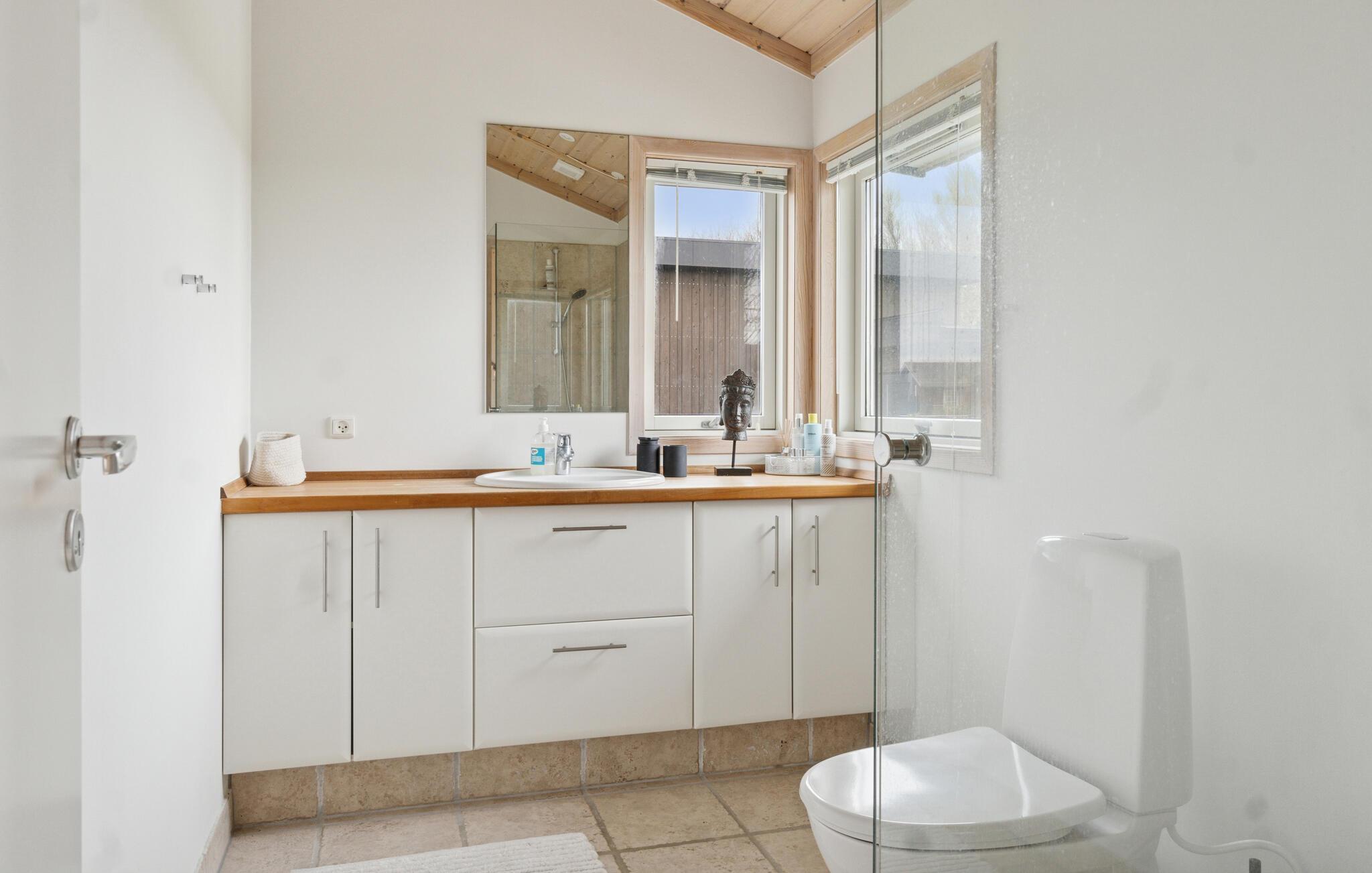 Glæd jer til en afslappende ferie i dette lyse feriehus, nogle få skridt fra stranden. Her finder I det ideelle sted at lægge hverdagen bag jer og nyde naturen fuldt ud. Opholdsstuen lægger op til at slappe af med komfortable siddepladser, mens det lyse køkken med store bordplader og en smuk udsigt gør madlavningen til en fornøjelse. Nyd måltider sammen i den åbne spisestue eller planlæg jeres næste udflugt over en kop kaffe.