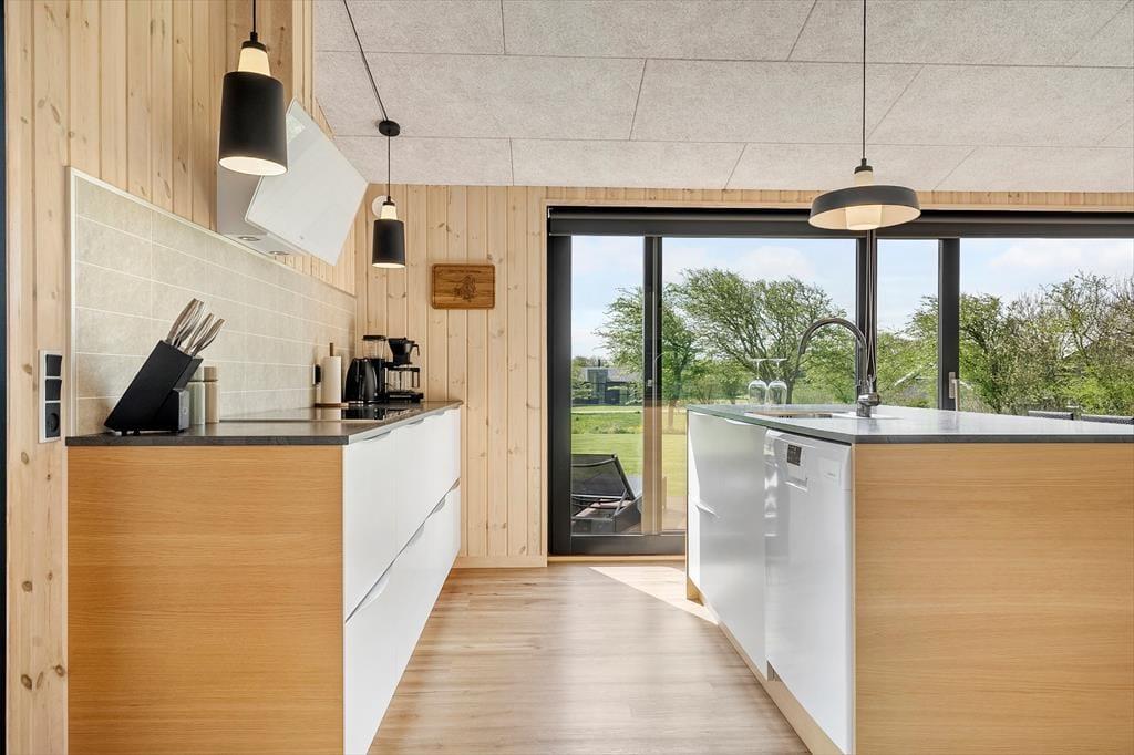 Inden døre er atmosfæren lys og indbydende, og alle rum er enkelt og stilfuldt indrettet med moderne møblement. Sommerhuset måler 99 m2 og byder blandt andet på en dejlig opholdsafdeling med integreret køkken, brændeovn og TV med både parabol og Chromecast. Tre gode soveværelser er også del af planløsningen, hvoraf to er indrettet med dobbeltseng og det tredje med to enkeltsenge. Her kan I se frem til en god nats søvn, og når I er klar til at stå op igen, kan I blive frisket op med et morgenbrusebad på det flotte badeværelse.
