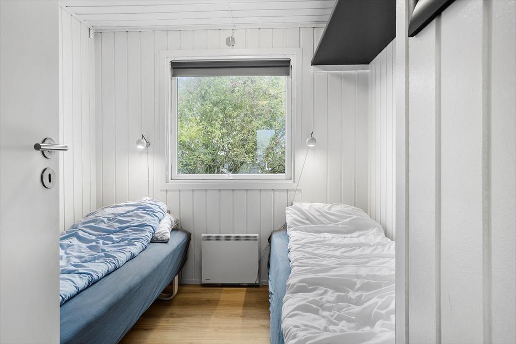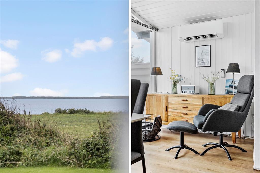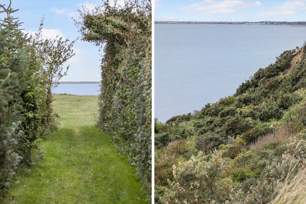 Hvis du drømmer om at slappe af i grønne og fredelige omgivelser, kan du glæde dig til at tilbringe solskinsdagene ude i det fri på sommerhusets store grund. Du får endda også noget blåt at kigge på, for over havens buske har du udsigt til fjorden og de drivende skyer på den høje himmel. Græsplænen indbyder til leg og havespil, og der er gyngestativ til børnene – og hele familien kan samles til eftermiddagskaffe og friskgrillet aftensmad på sommerhusets dejlige terrasser. Og hvis du får lyst til at se solnedgangen fra vandkanten, skal du bare krydse over fjordengen og finde den nærmeste nedgang til den hyggelige strand.