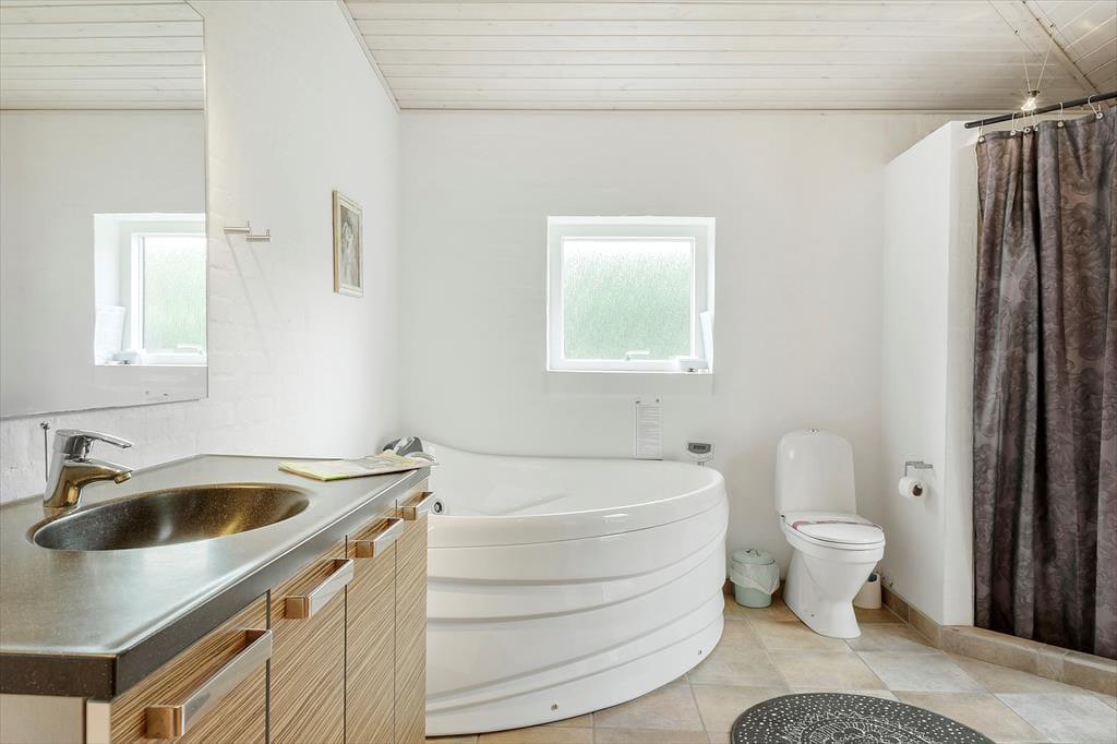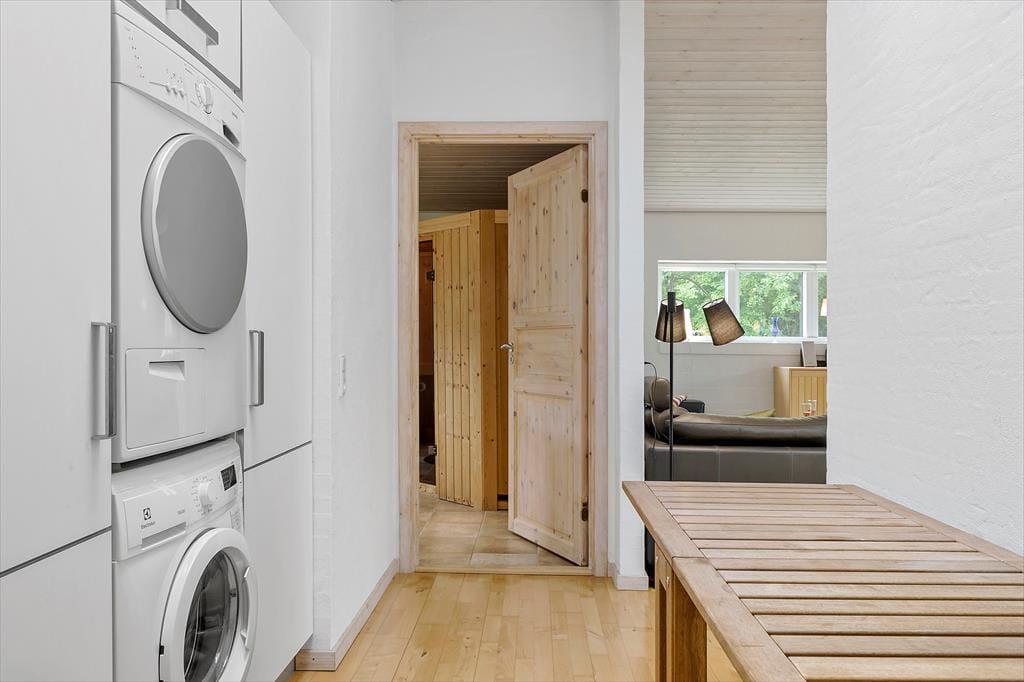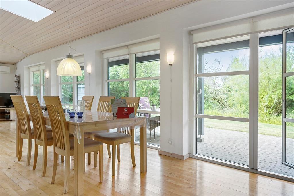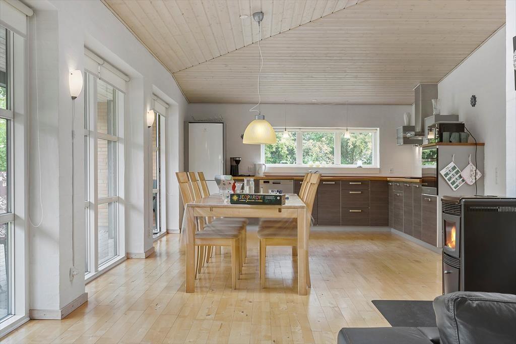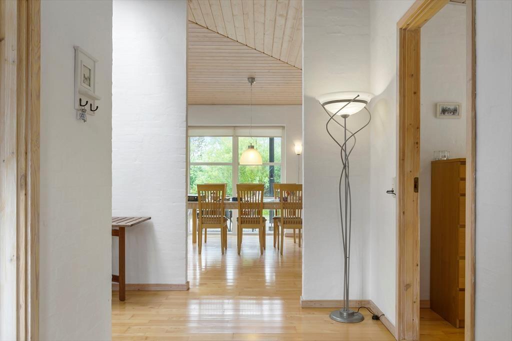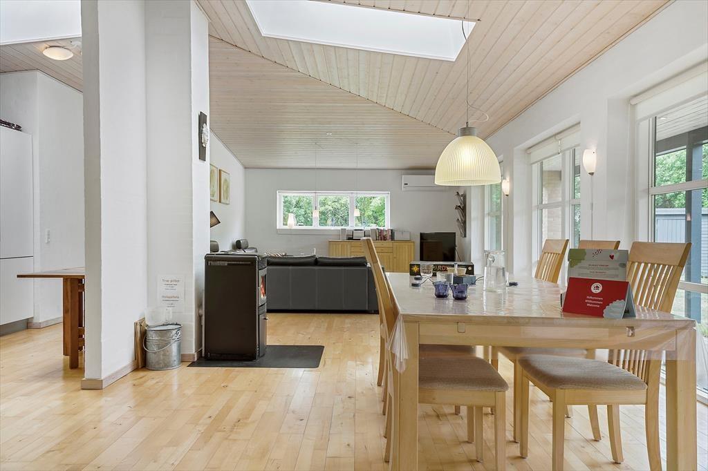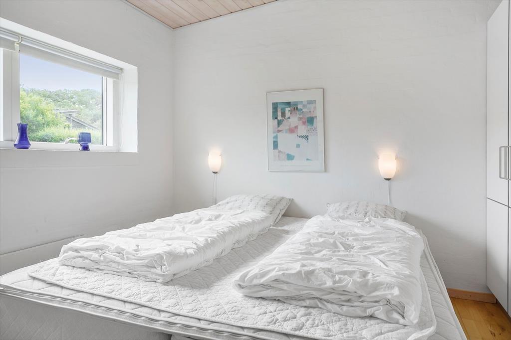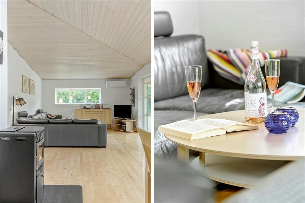 Sommerhuset er i sten og meget velisoleret, således at der er lave forbrugsomkostninger. Smagfuld og gennemført indretning. Virkelig et liebhaverhus. Det lyse opholdsrum er med parketgulv, hvide vægge og lyst træ på lofterne. Flotte og komfortable møbler. Stort og særdeles flot og veludstyret køkken. Badeværelset lader intet tilbage at ønske med gulvvarme, spabad og meget stor sauna. De i alt 5 sovepladser fordeler sig med 2 dobbeltsenge og 1 enkeltseng i det 3. og sidste soverum. Husdyr tillades ikke i huset pga. allergi i ejerfamilien, og sommerhuset er derfor allergivenligt indrettet. Der er ligeledes installeret en energibesparende varmepumpe, der sikrer et godt indeklima året rundt.