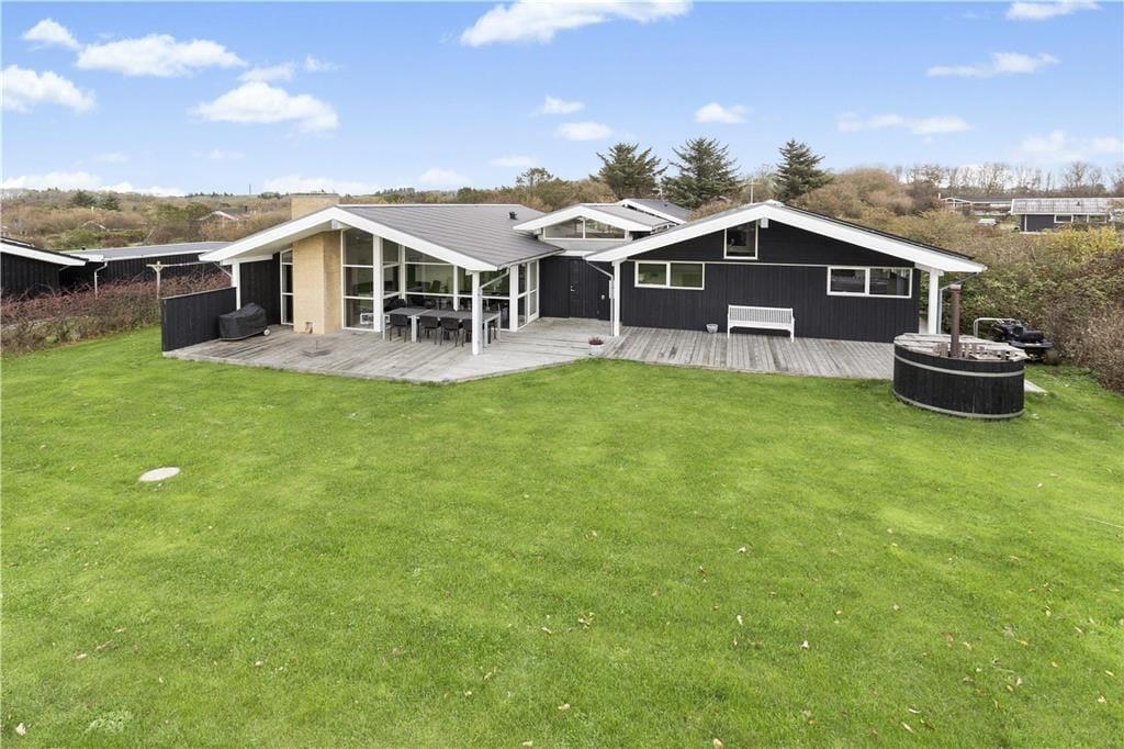 Til huset er der en stor flot plænegrund, som indbyder til leg og spil. På de store terrasser mod syd og vest er der altid mulighed for læ - og lange sommeraftener, når vejret tillader det. Udover et specialbygget vildmarksbad på terrassen, er huset også udstyret med alt i terrasseudstyr.