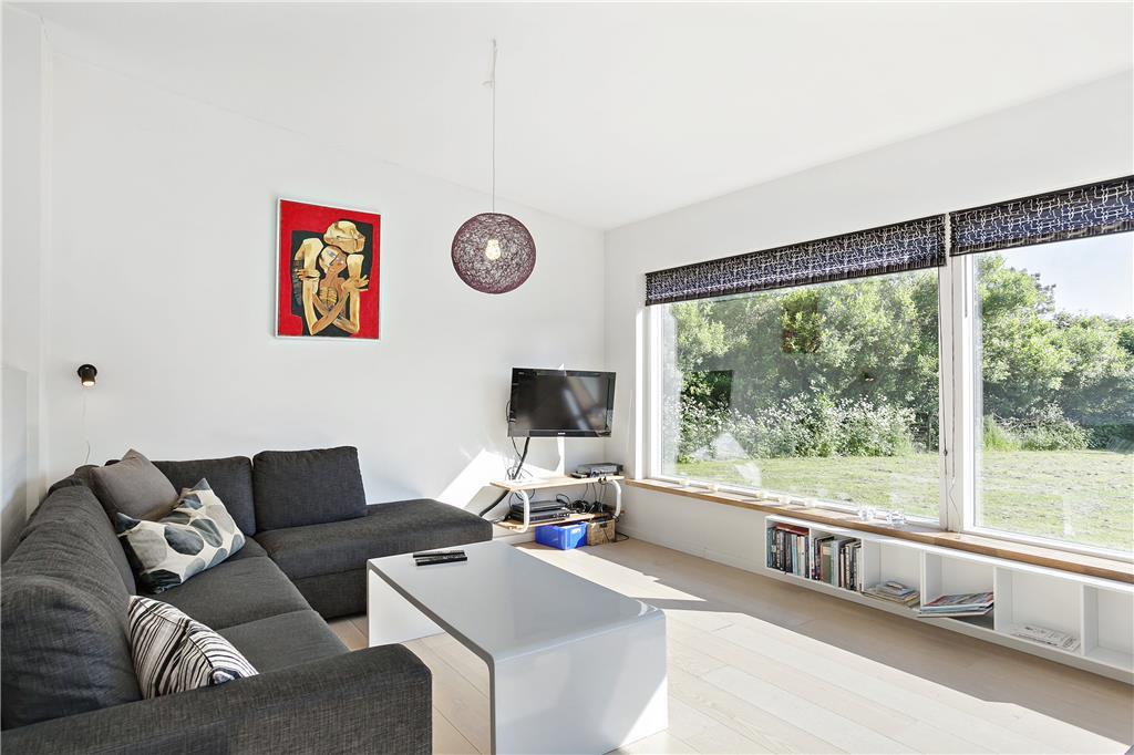 Huset er meget rummeligt for en stor eller to familier, og er man færre personer eller blot et par, kan ca. 1/3 af huset lukkes af, så det ikke virker stort og ikke koster opvarmning. I den ene ende af huset, er der to soverum med hver, to enkeltsenge, samt badeværelse. I den anden ende er der to soverum med hver en dobbeltseng og også et badeværelse. Se husets plantegning. I midten af huset, er indgangen fra indkørslen, samt udgang på den anden side af huset til terrasse og have. Naturligvis er der et meget rummeligt opholdsrum og køkken. Der er lyse trægulve og lyse flisegulve i hele huset og overalt hvide vægge og lofter. Alt er topmoderne - men på en hyggelig og gennemtænkt måde.