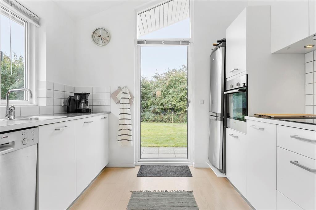 Ferieforholdene er fine inden døre i det 100 m2 store hus. Det er opført i 2021 og har en let og luftig atmosfære takket være de lyse farvetoner og store vinduer, der inviterer solen ind og giver udsigt til den grønne have. Planløsningen er åben i opholdsafdelingen, hvor køkken og stue er forenet. Her er der brændeovn, og en energivenlig varmepumpe er med til at holde forbruget nede. Vil I følge med i nyhederne, er der selvfølgelig gratis wi-fi i huset, og stuen byder på en fladskærm med både kabel-tv og Chromecast, hvis I trænger til underholdning. Tre gode soveværelser ligger godt fordelt i huset, som endelig også rummer to flotte badeværelser, hvoraf det største er med lækkert spabad.
