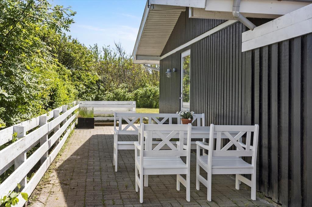 På sommerlige dage er det oplagt at lade driverlivet udspille sig på den tilhørende terrasse. Den er stor og delvist overdækket, og der er flere gode solkroge at vælge imellem alt efter tidspunktet på dagen. Havens græsplæne, som omkranses af buske, kan bruges til boldspil eller en dyst i kongespil, hvis der er legebørn med på ferien.