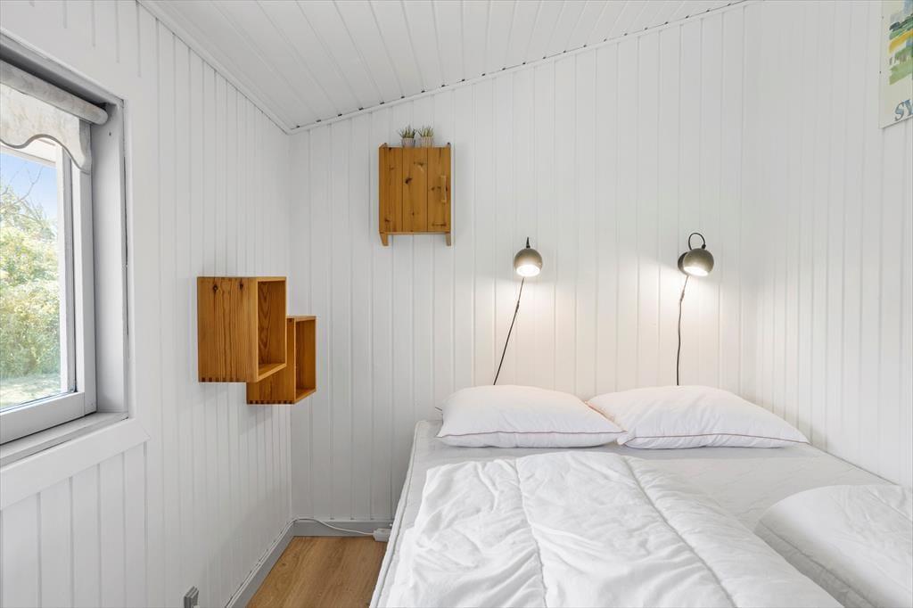 Huset ligger på et af de højeste punkter i Kjærgaarden, hvilket forklarer den skønne udsigt. Fra stuens store, vestvendte vinduesparti har I frit udsyn til den høje himmel og kan følge med i, hvordan Limfjordens vand ændrer udseende i takt med vejr og vind. Denne flotte udsigt er bestemt ikke husets eneste kvalitet, for det er nemlig et pænt og velholdt eksemplar med mange hyggelige detaljer. For eksempel er det rart, at der er brændeovn i stuen, hvis vejret er til indendørs hygge med krimilæsning, brætspil og gode film på fladskærmen. Udover stuen, som ligger i åben forbindelse med køkkenafdelingen, byder planløsningen på tre soveværelser med i alt seks sengepladser samt et badeværelse med bruseniche.