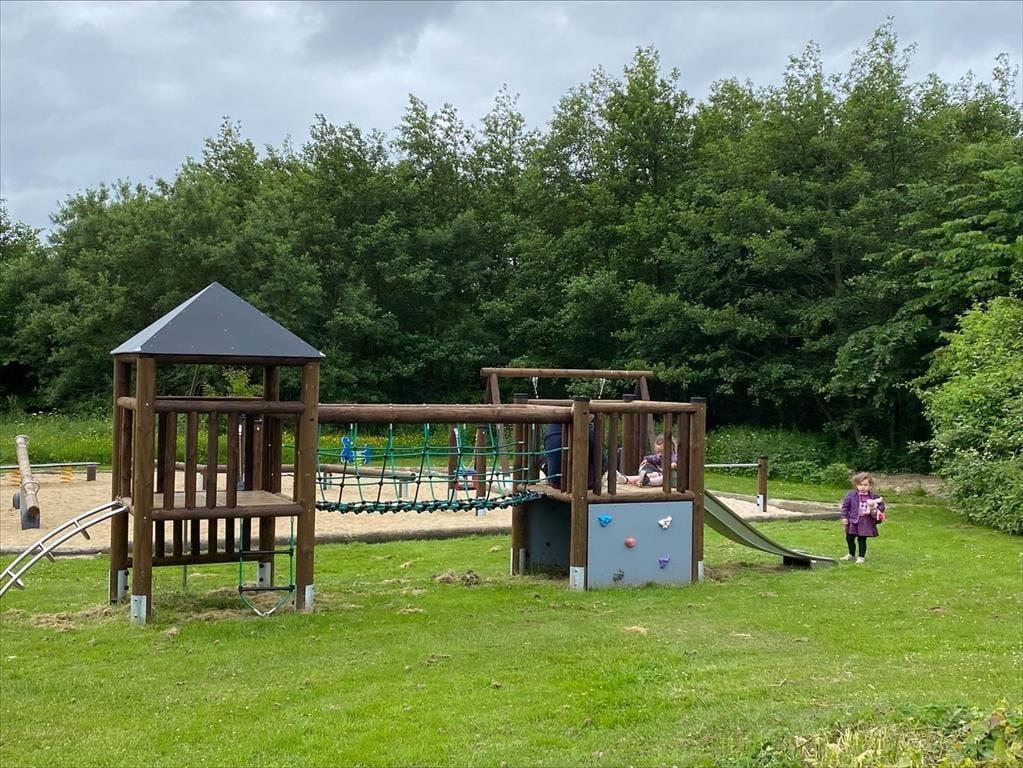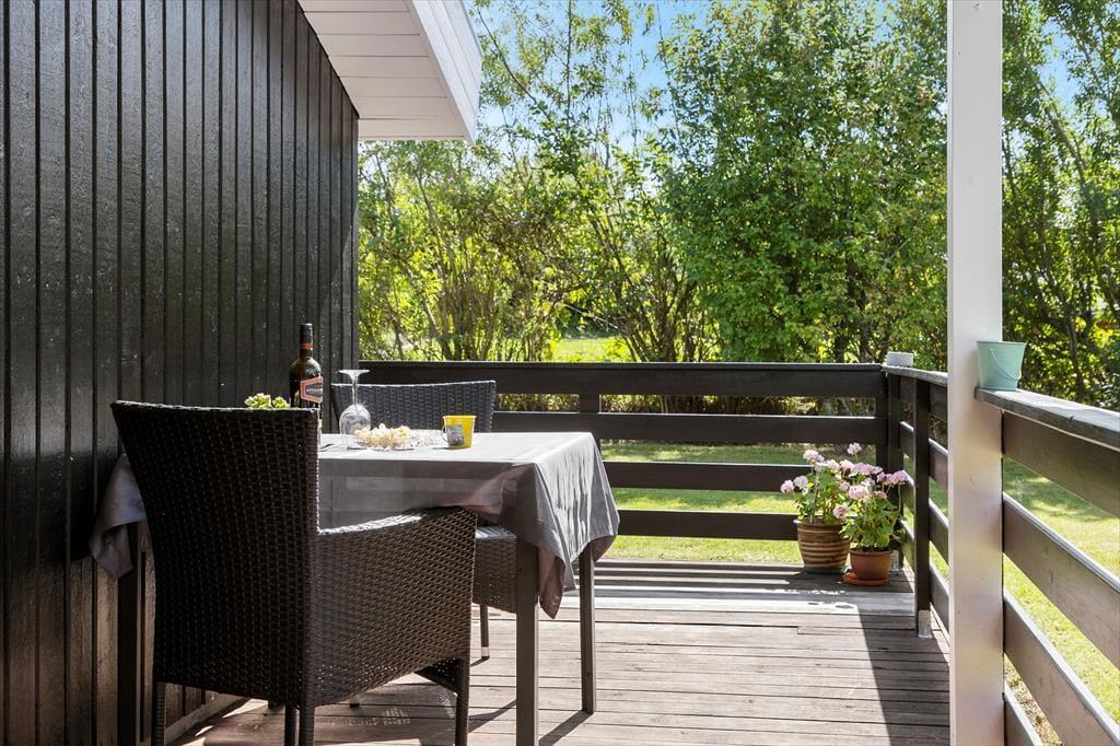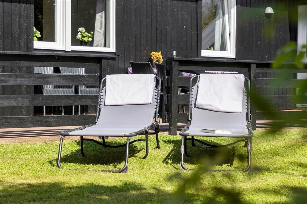 Udelivet i sommerhuset er lige så tiltalende som indenfor. Den store, velplejede have inviterer til leg og afslapning for både børn og voksne, mens de overdækkede terrasser giver mulighed for skyggefulde og rolige stunder. Morgenkaffen kan nydes i solen på en liggestol, og når dagen går på hæld, kan grillen tændes, mens duften af aftensmad breder sig over græsset. Her er plads til at koble helt af og nyde ferielivet, og med flere siddeområder kan både sol- og skyggeelskere finde deres favoritsted. Kombinationen af spa, sauna og smukke udendørsarealer gør, at du kan skifte mellem afslapning indendørs og livligt samvær udenfor.
