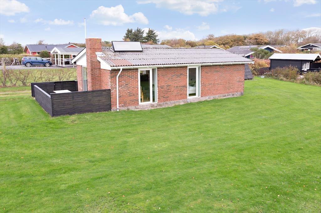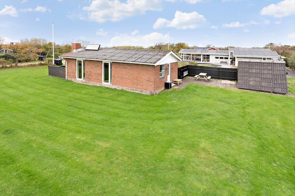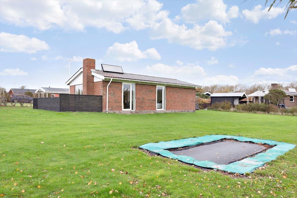 Er vejrguderne med jer på ferien, kan I glæde jer over sommerhusets dejlige udearealer. Grunden er helt enkelt anlagt med randbeplantning og en stor græsplæne, hvor I kan lege og spille bold, og måske især de yngste familiemedlemmer kan sikkert få timer til at gå med at hoppe på trampolinen. Vil I læse avis i solen eller tilberede aftensmaden på grillen, har I to gode terrasser at vælge imellem. Kommer I i elbil, er der mulighed for opladning, så ankomsten bliver endnu nemmere.