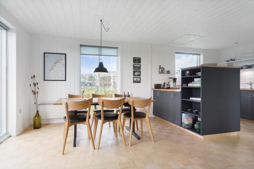 Ferieboligen ligger på Hellesvej, som er en af de fredelige, små veje i det lukkede sommerhusområde Kjærgaarden. Her er der en skøn legeplads til de mindste og boldbane, petanquebane og minigolf til hele familien, og hvis I trænger til en travetur i den friske luft, kan I følge de velanlagte stier jer lige ud i fjordlandskabet. I kan også spadsere ned til Limfjorden for at bade eller finde flotte sten og skaller, og får I lyst til at se Vesterhavet, kan I køre til Agger på 10-12 minutter. Feriens indkøb kan klares hos købmanden i Vestervig, der for øvrigt byder på en kro og Nordens største landsbykirke, og alternativt kan I fortsætte videre til Hurup, der har et større butiksudvalg samt golfbane og kurbad.
