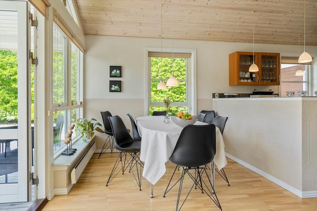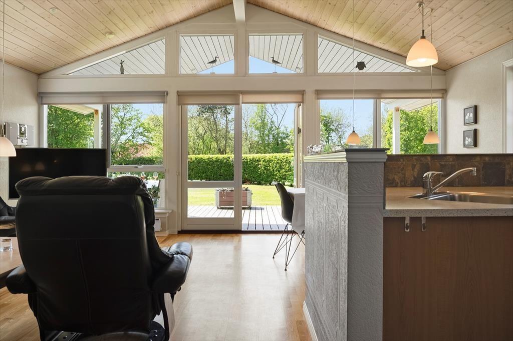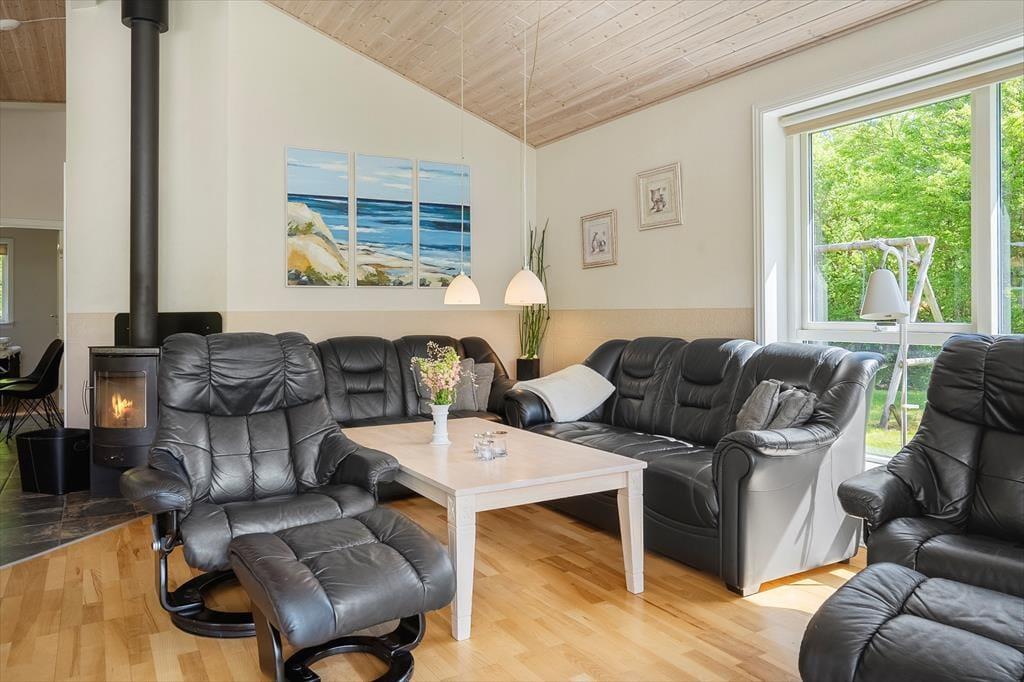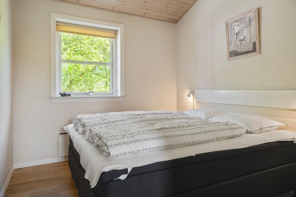 Sommerhuset udlejes til 8 personer, og der er tilladelse til 2 husdyr. Her er god plads til to familier, og du er meget velkommen til at tage din hund med på ferie. Sengepladserne i det rummelige sommerhus fordeler sig i fire soverum. I to soverum er der dobbeltsenge, i et soverum er der to køjesenge, og i det sidste soverum er der to x to køjesenge. Køkkenet er veludstyret med bl.a. opvaskemaskine og mikroovn. Det store opholdsrum har store panoramavinduer mod syd og dermed et godt lysindfald. Du har både brændeovn og TV med både danske, tyske, norske og svenske programmer samt gratis Wi-Fi internet. Luksushuset har et stort badeværelse med spabad og sauna og et mindre badeværelse, hvor du finder sommerhusets vaskemaskine og tørretumbler. Begge med gulvvarme. Sommerhuset har vekselvarme og er derfor miljøvenligt og billigt at opvarme. Alt er særdeles velholdt.
