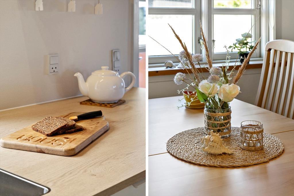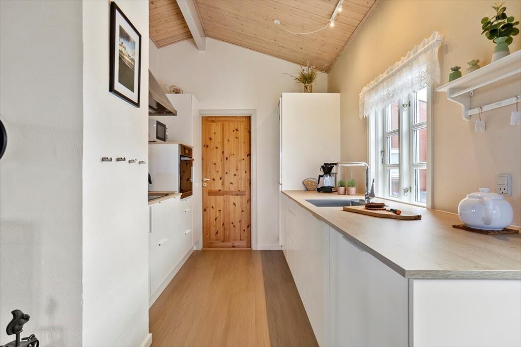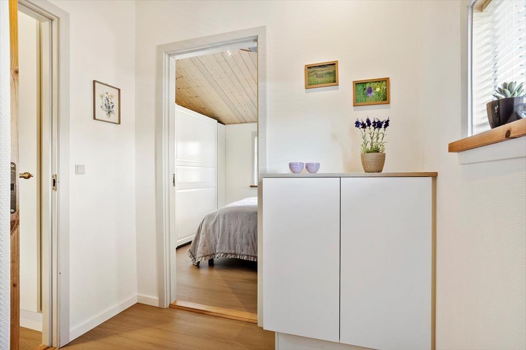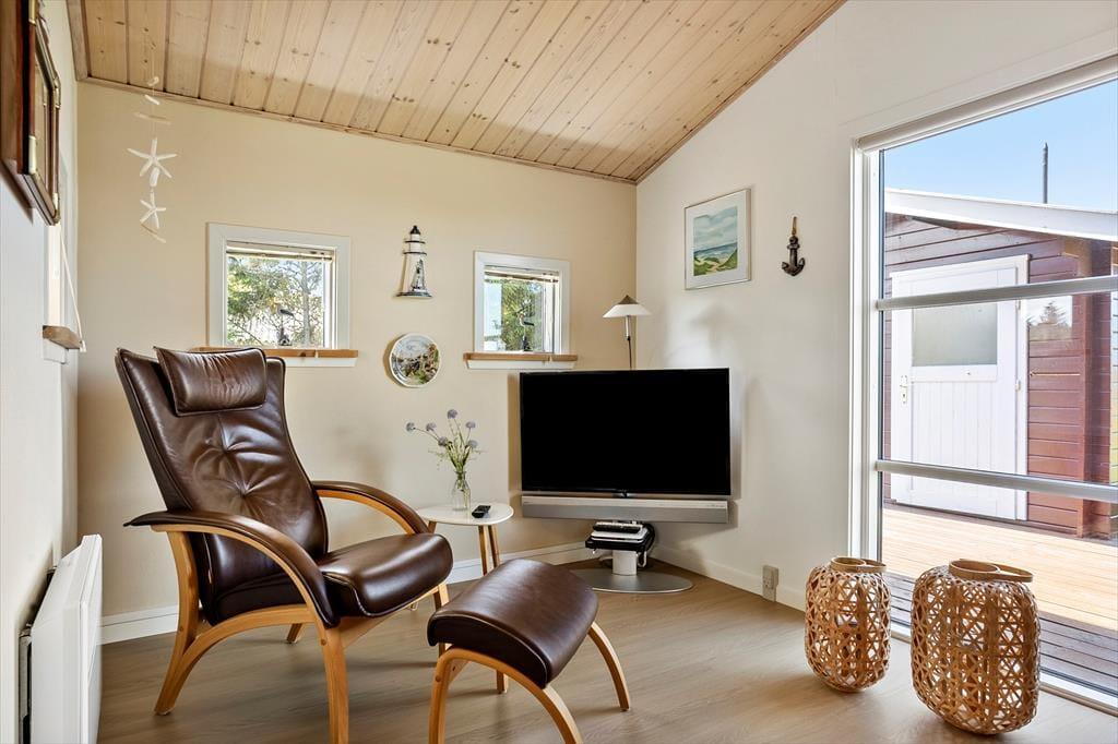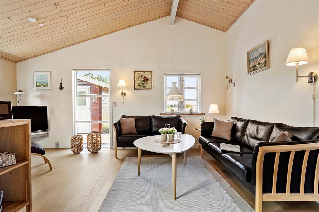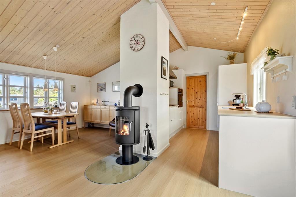 Indenfor bliver du budt velkommen af et lyst og luftigt sommerhus, hvor rummene er indrettet med fokus på hygge og funktionalitet. Den rummelige stue har store vinduespartier, der trækker naturen tættere på og skaber en fantastisk forbindelse mellem inde- og udeliv. Brændeovnen i hjørnet giver varme og stemning til de aftener, hvor du og dine kære kan samles om gode samtaler eller en god film på tv’et. Det åbne køkken er praktisk og moderne, så det er nemt at tilberede et lækkert måltid, mens familie og venner hygger sig i stuen. Soveværelserne indbyder til afslapning og ro, og med et flot badeværelse har I alt, hvad I behøver til en bekvem ferie.