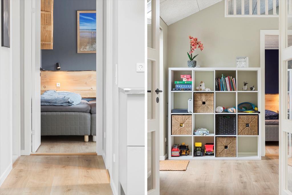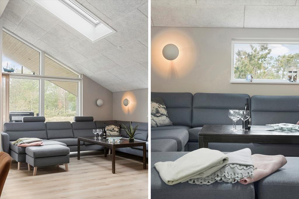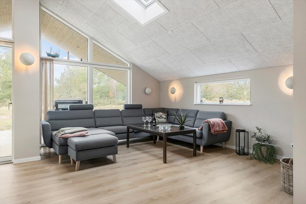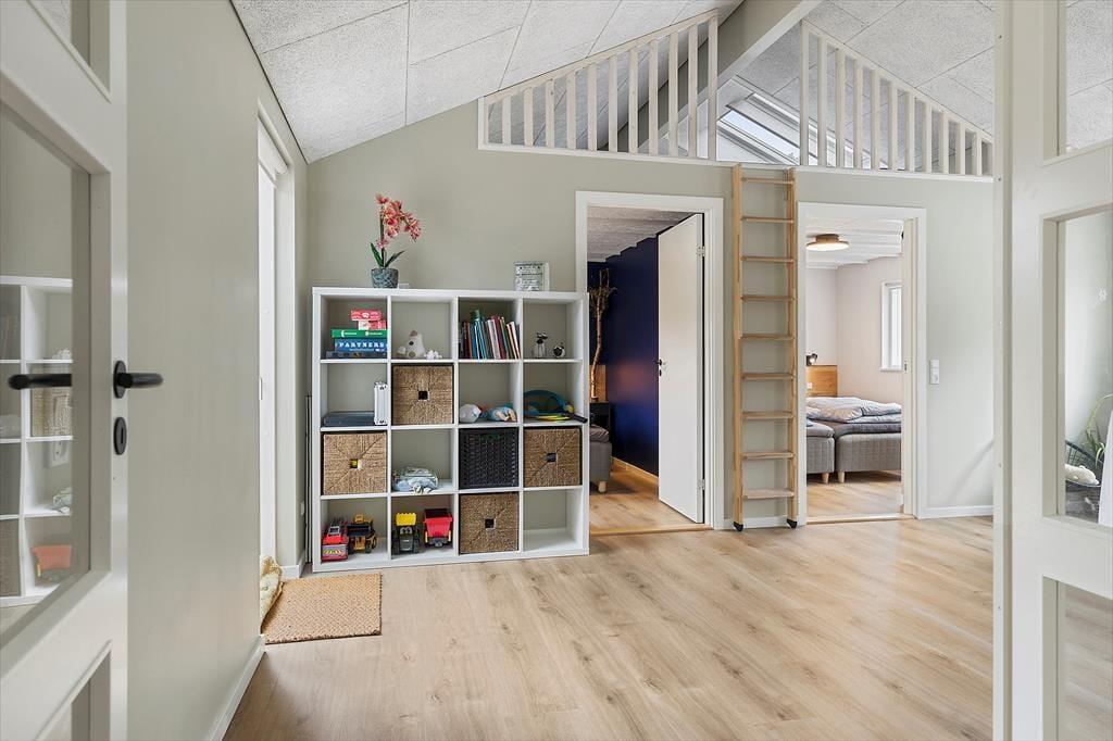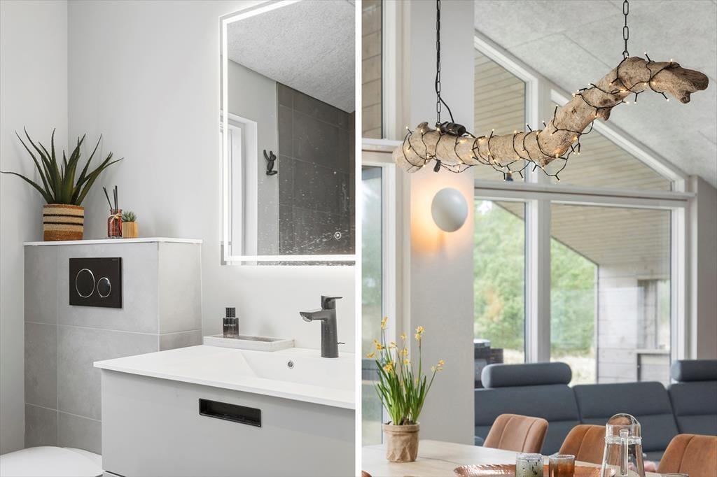Takket være sommerhusets gode indretning og mange kvadratmeter er det intet problem at være otte personer inden døre – og de fire soveværelser og to badeværelser ligger endda fordelt i to afdelinger, så det er en ideel feriebolig for to familier. I løbet af dagen kan du hygge dig med at spille brætspil i stuen eller at flade ud i sofaafdelingen, og hvis der er nogle, der vil dyste i bordfodbold i aktivitetsrummet eller lege på hemsen, er der også rig mulighed for det. I det åbne køkken kan I sagtens stå flere, når der skal kokkereres, og når maden står klar, kan alle samles om spisebordet til et lækkert måltid. Efter middagen kan I hygge videre i fælles flok, og hvis du får lyst til at trække dig lidt tilbage, kan du forkæle dig selv med et varmt spabad og en tur i saunaen.