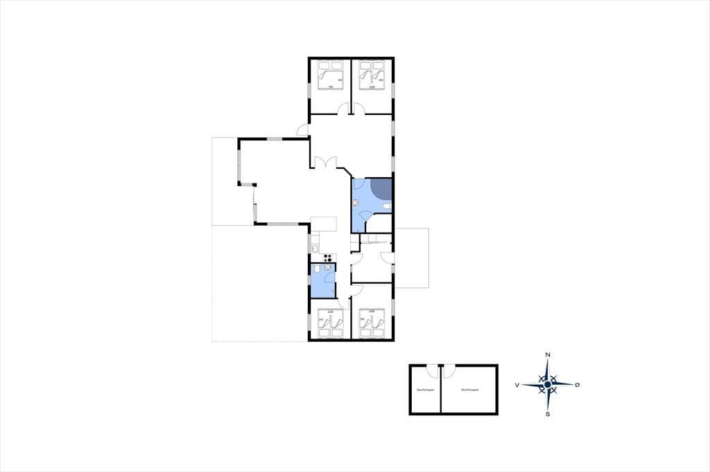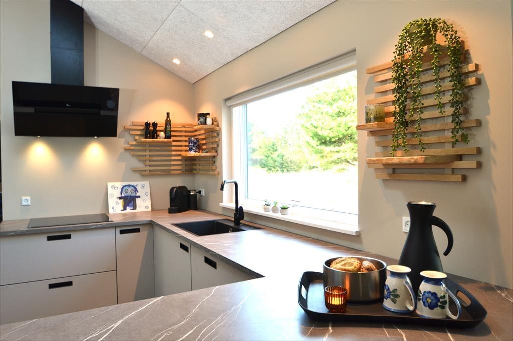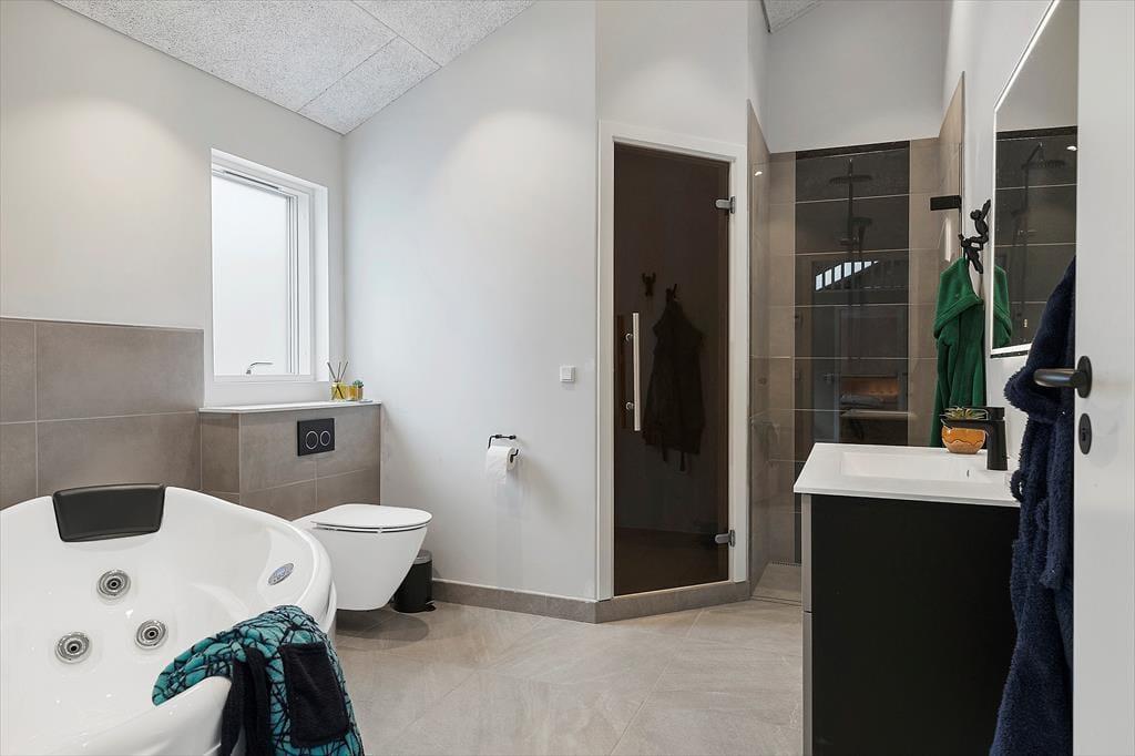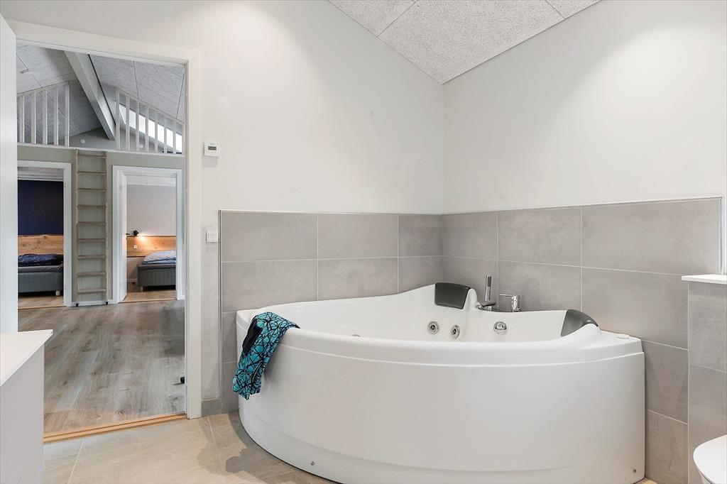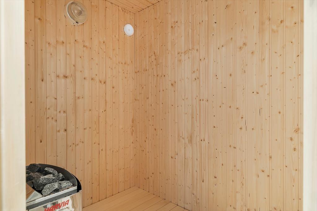 Takket være sommerhusets gode indretning og mange kvadratmeter er det intet problem at være otte personer inden døre – og de fire soveværelser og to badeværelser ligger endda fordelt i to afdelinger, så det er en ideel feriebolig for to familier. I løbet af dagen kan du hygge dig med at spille brætspil i stuen eller at flade ud i sofaafdelingen, og hvis der er nogle, der vil dyste i bordfodbold i aktivitetsrummet eller lege på hemsen, er der også rig mulighed for det. I det åbne køkken kan I sagtens stå flere, når der skal kokkereres, og når maden står klar, kan alle samles om spisebordet til et lækkert måltid. Efter middagen kan I hygge videre i fælles flok, og hvis du får lyst til at trække dig lidt tilbage, kan du forkæle dig selv med et varmt spabad og en tur i saunaen.