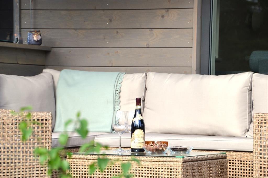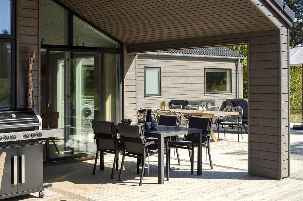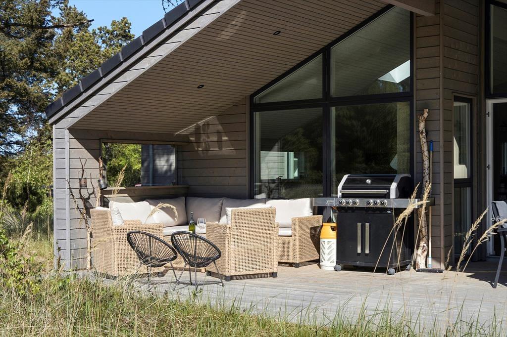 Naturgrunden er stor og ugeneret, så det er det helt rette sted at slappe af og mærke skuldrene sænke sig langt væk fra hverdagens rutiner. Vil du helt ned i tempo, kan du passende tage et velfortjent hvil i vildmarksbadet – og hvis det er for lunt i vejret til et varmt bad, virker en middagslur i en god liggestol bestemt også velgørende. På det flotte terrassemiljø kan både unge og gamle i dit selskab mødes for at nyde feriens udendørs måltider, og her kan I både sætte jer under overdækningen eller helt ude under åben himmel.